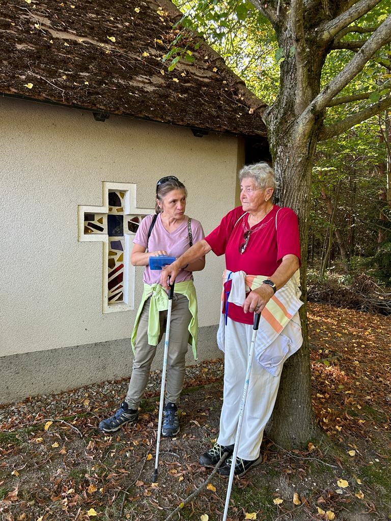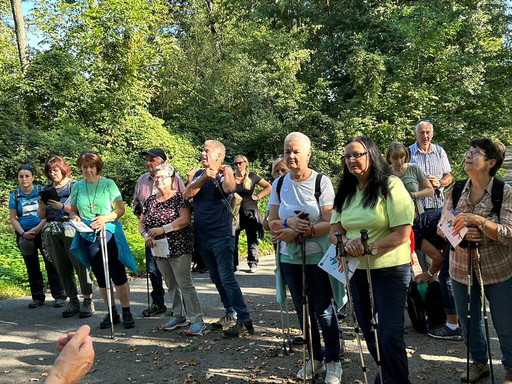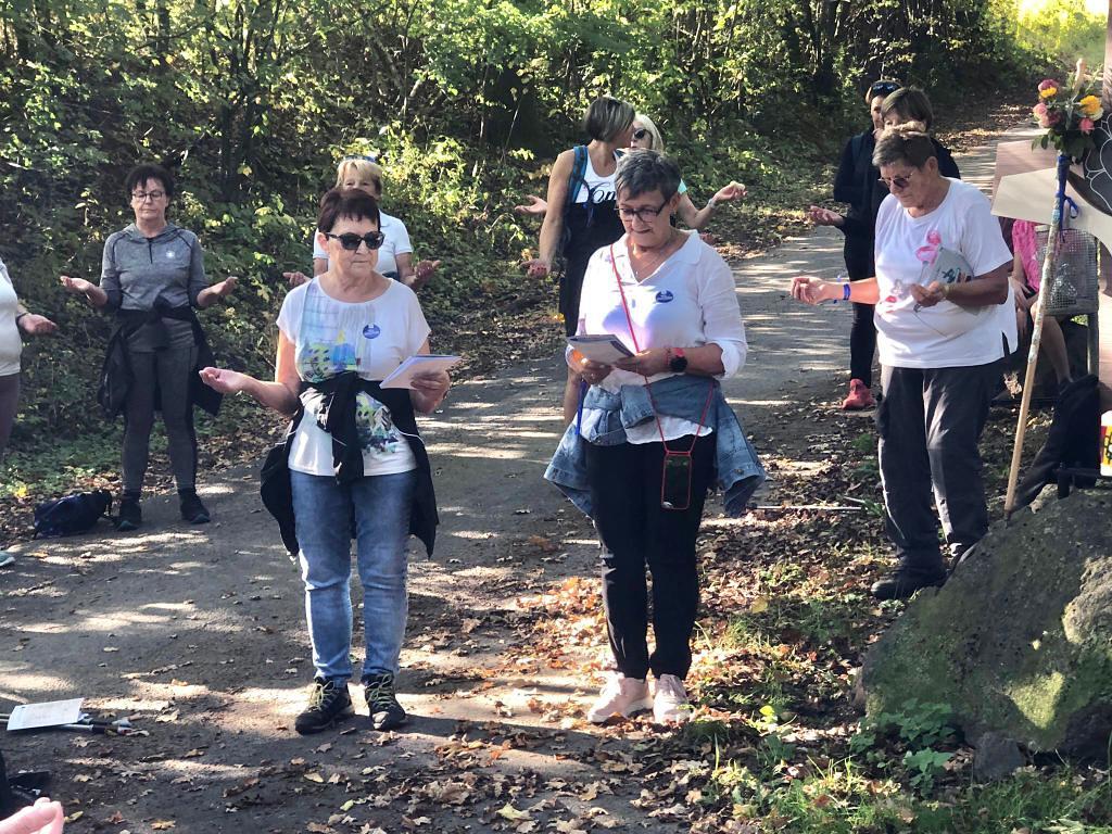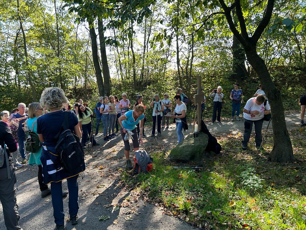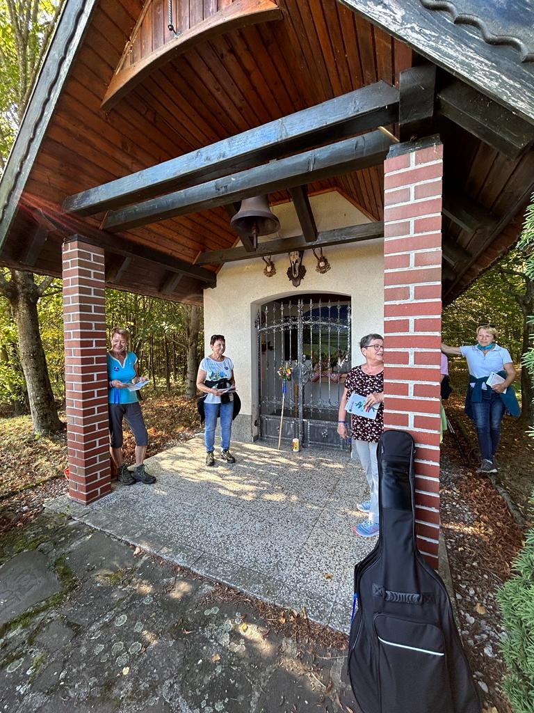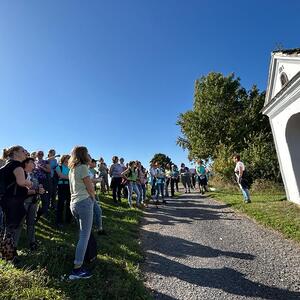 Bei der 1. Station ein Marterl mit einer Pietastatue wurden meditative Gedanken und Gebete gelesen und ein Marienlied gesungen. Danach ging es weiter Richtung Lindgraben zum Ökumenischen Kreuz. Bei zwei weiteren Stationen war Zeit zum Innehalten. Angeleitet durch meditative Texte, Gesprächsanregungen bzw. auch in Stille nachzudenken ging es weiter bis zur Florianikapelle.