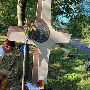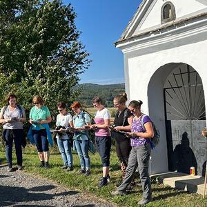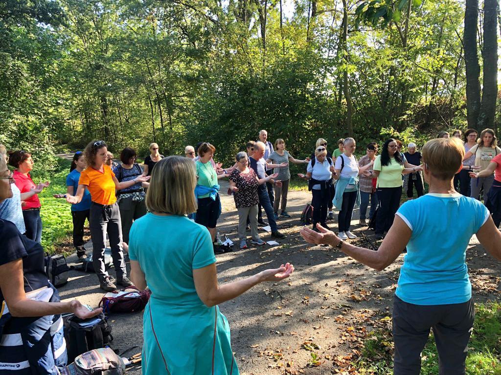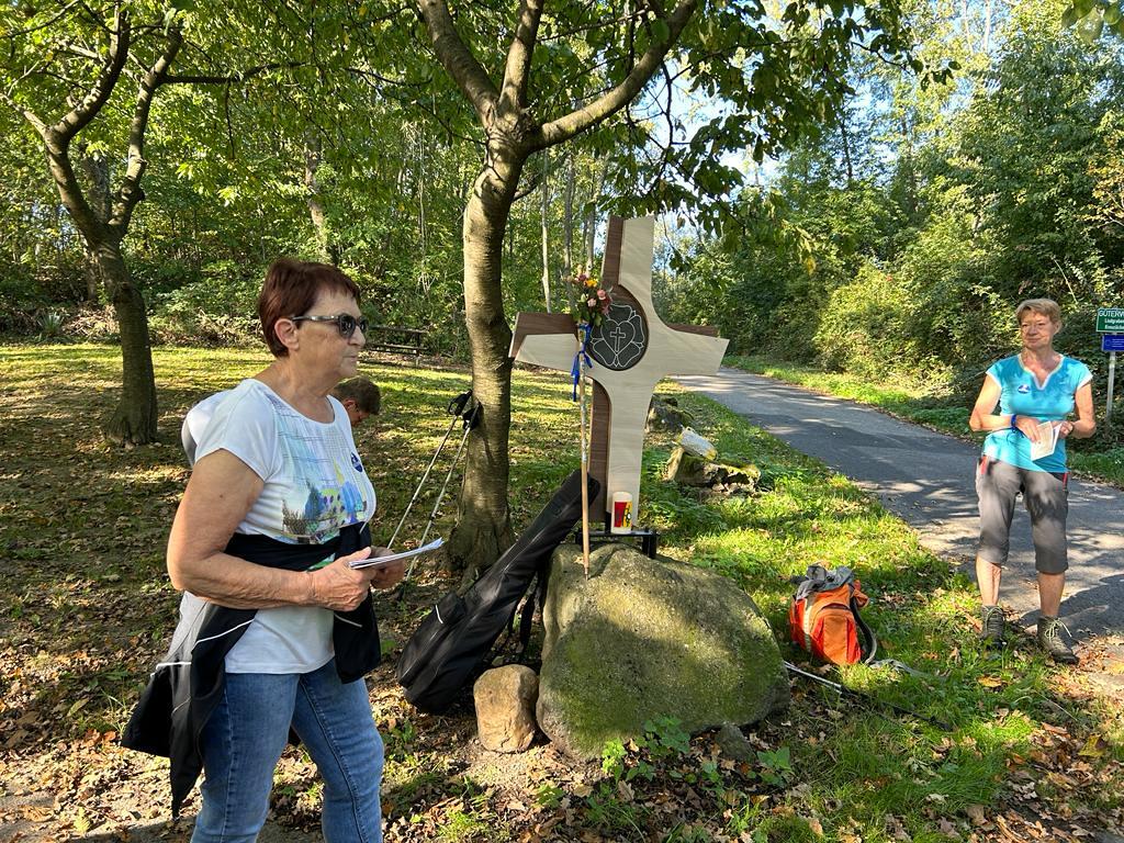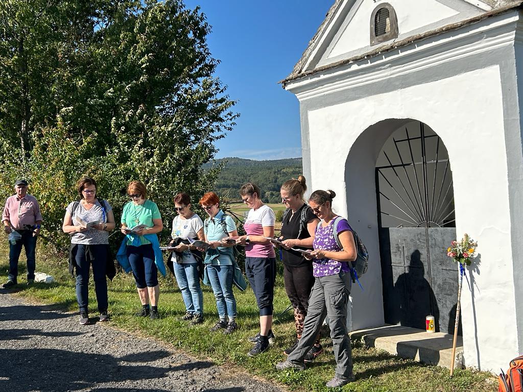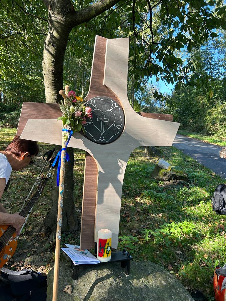 Bei der 1. Station ein Marterl mit einer Pietastatue wurden meditative Gedanken und Gebete gelesen und ein Marienlied gesungen. Danach ging es weiter Richtung Lindgraben zum Ökumenischen Kreuz. Bei zwei weiteren Stationen war Zeit zum Innehalten. Angeleitet durch meditative Texte, Gesprächsanregungen bzw. auch in Stille nachzudenken ging es weiter bis zur Florianikapelle.