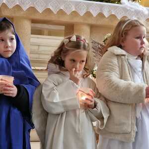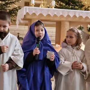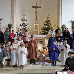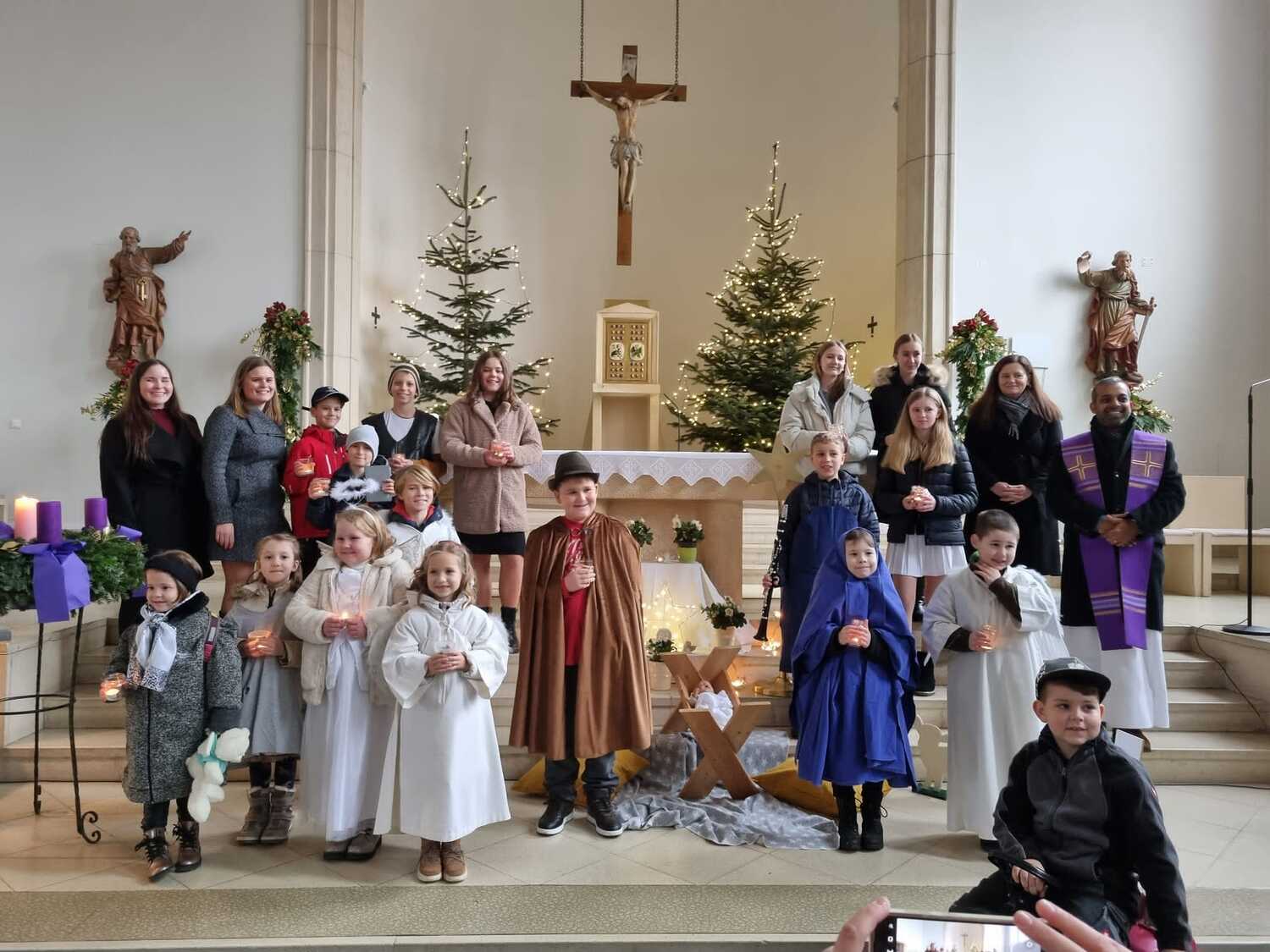 Gemeinsam mit Marie Bauer haben sich die Kindergartenkinder, Volksschulkinder, Kommunionkinder, Firmlinge und Ministrantenkinder Gedanken über Weihnachten gemacht und mit einem Krippenspiel, welches von den ursprünglichen Ereignissen vor über 2000 Jahren in die heutige Zeit reicht.
