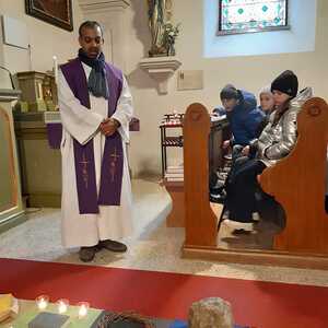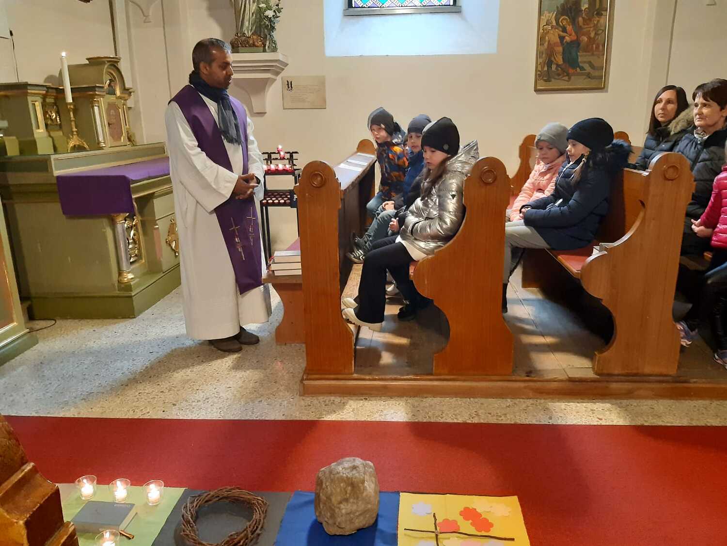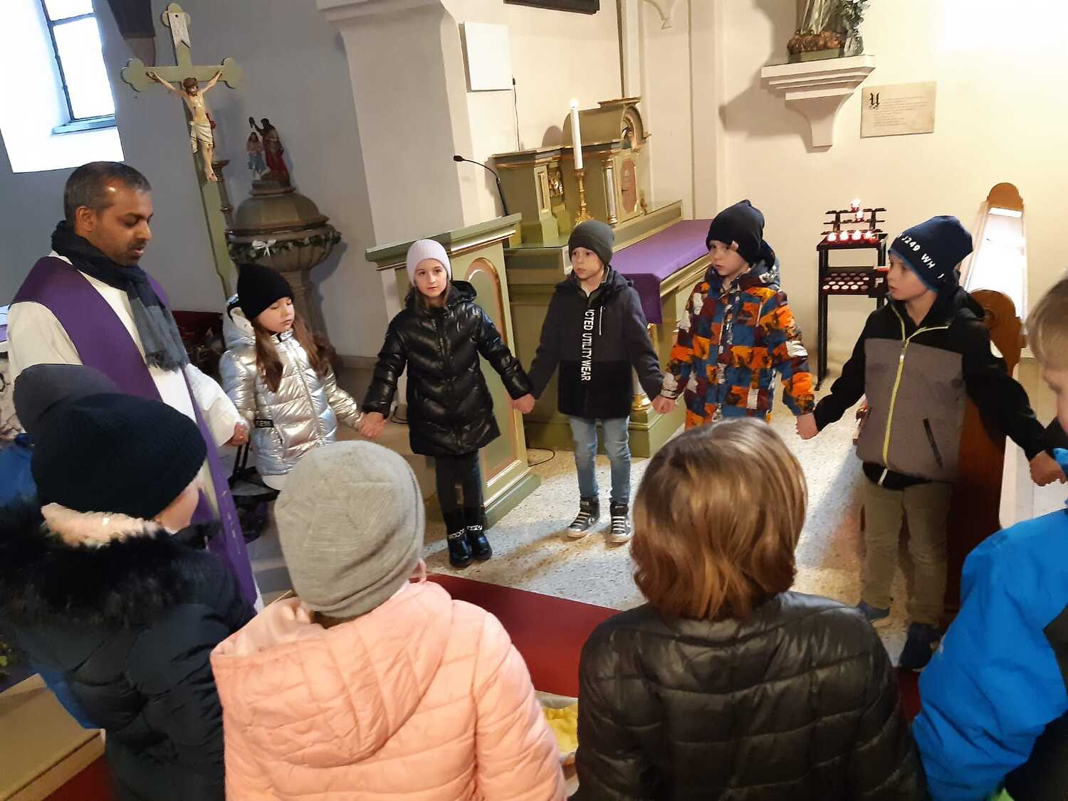 Die Kinder haben sich mit ihrer Jungscharleiterin Katja, Pfarrer Shinto und der restlichen Pfarrfamilie gemeinsam auf den Weg gemacht, um sich in verschiedenen Stationen auf Ostern vorzubereiten.