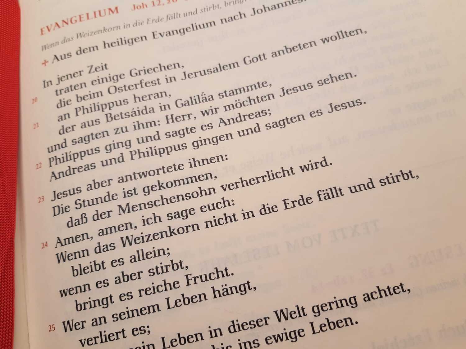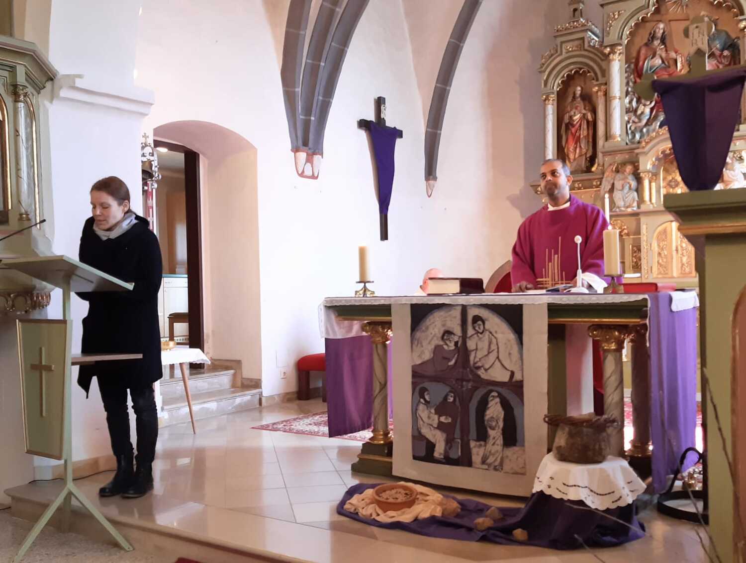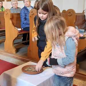 Zur Bibelstelle „Wenn das Weizenkorn in die Erde fällt und stirbt, bringt es reiche Frucht “ hatte Jungscharleiterin Katja am 5. Fastensonntag mit den Kindern einen wunderbaren Familien-Gottesdienst vorbereitet. Nach der Predigt, in der auch Pfarrer Shinto das Thema auslegte, brachten die Kinder Weizenkörner zum Altar und setzten diese dort in eine vorbereitete Schale mit gefüllter Erde – als Zeichen, dass auch unser Leben nicht fruchtlos bleibt. Anschließend sangen die Kinder das Lied „Gottes Liebe ist so wunderbar“. Am Ende des Gottesdienstes wurde an alle Gottesdienstbesucher ein kleines Säckchen mit Weizenkörnern verteilt.