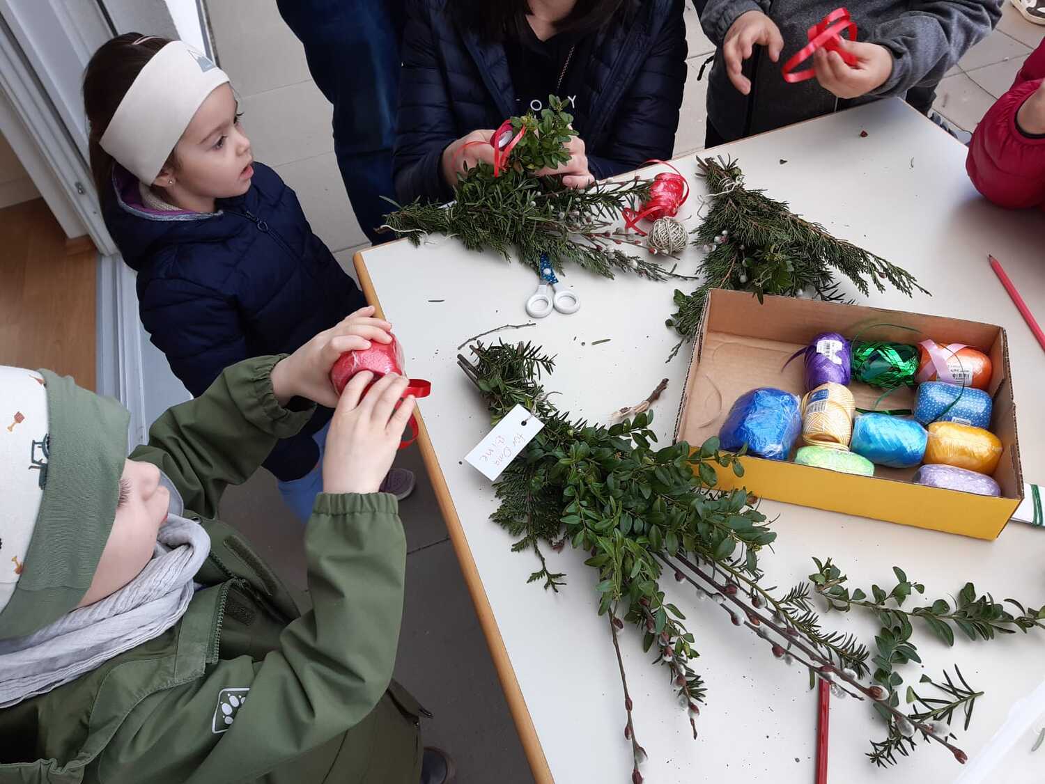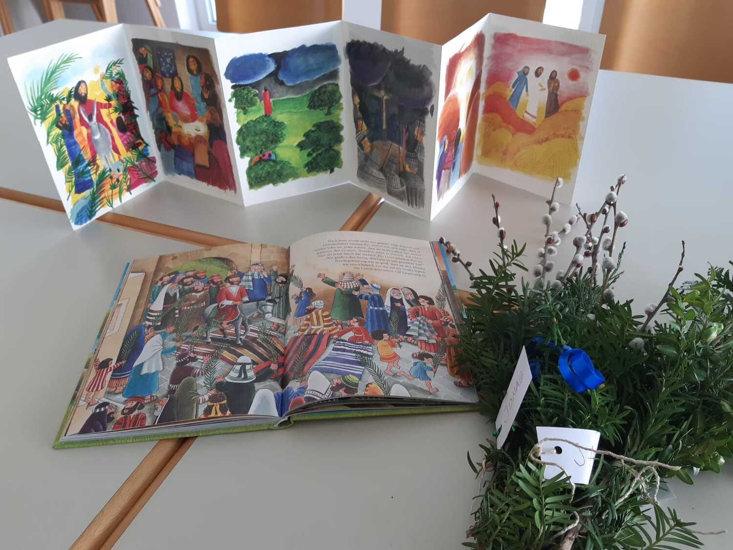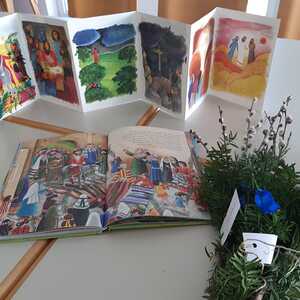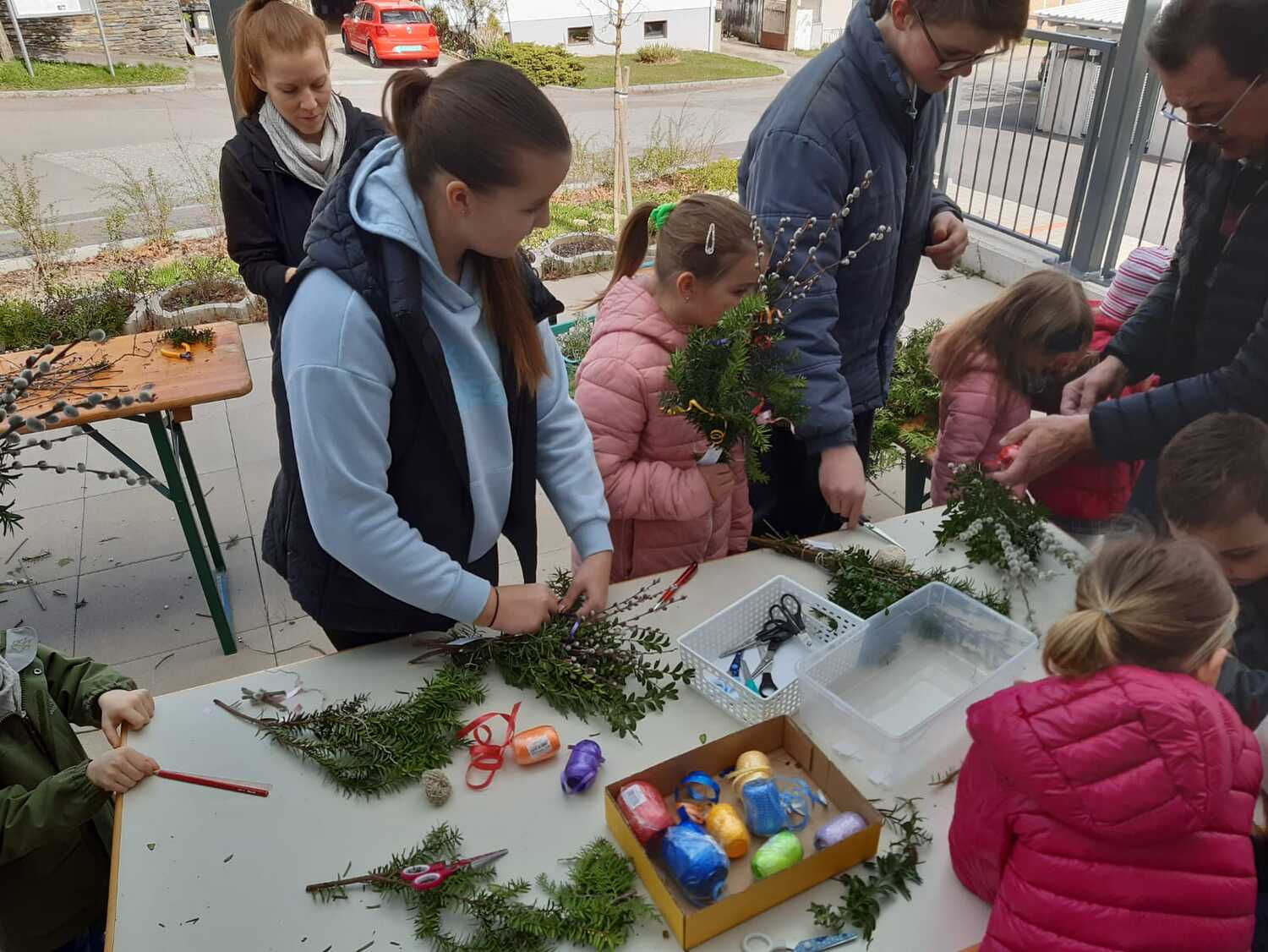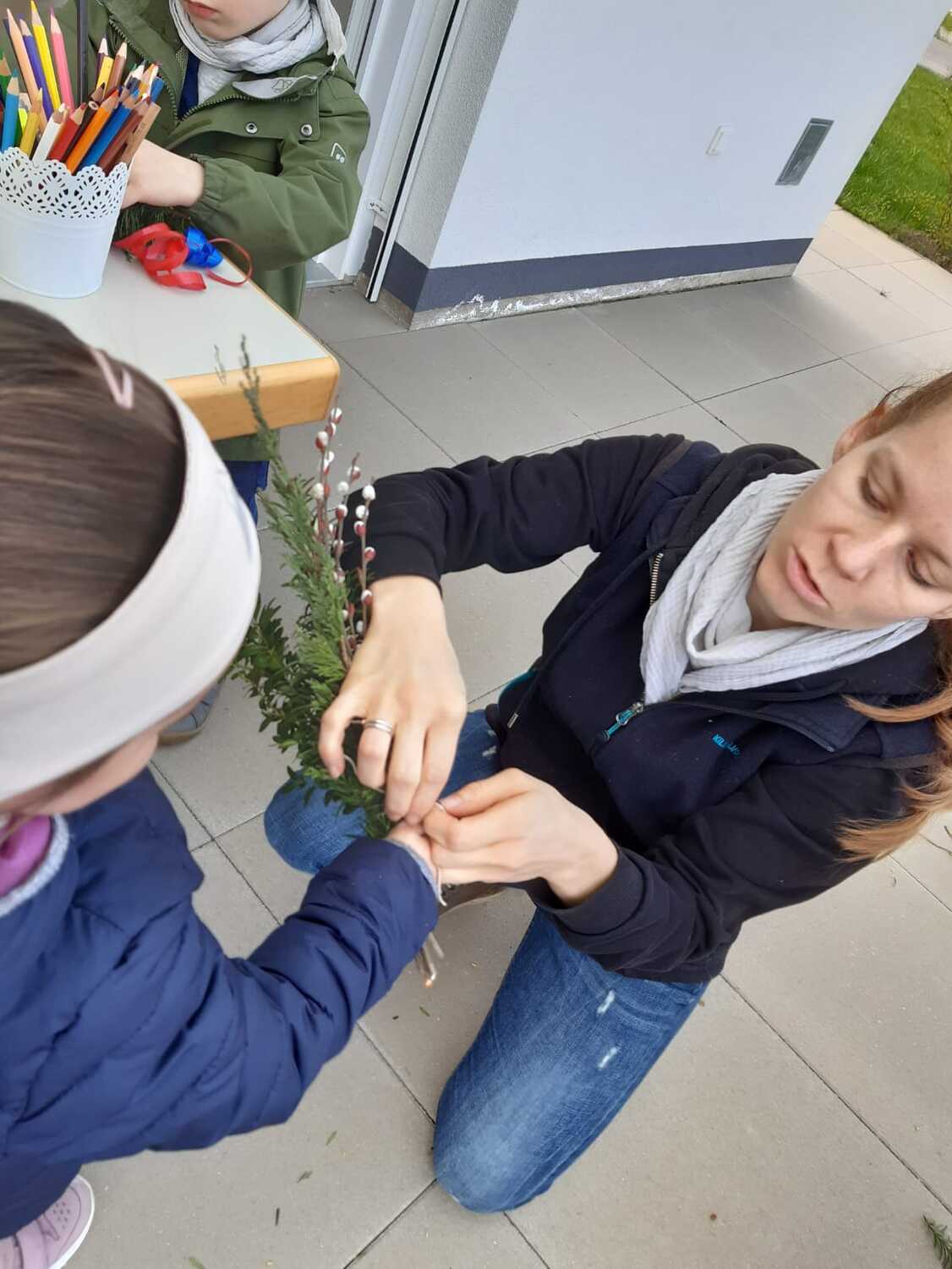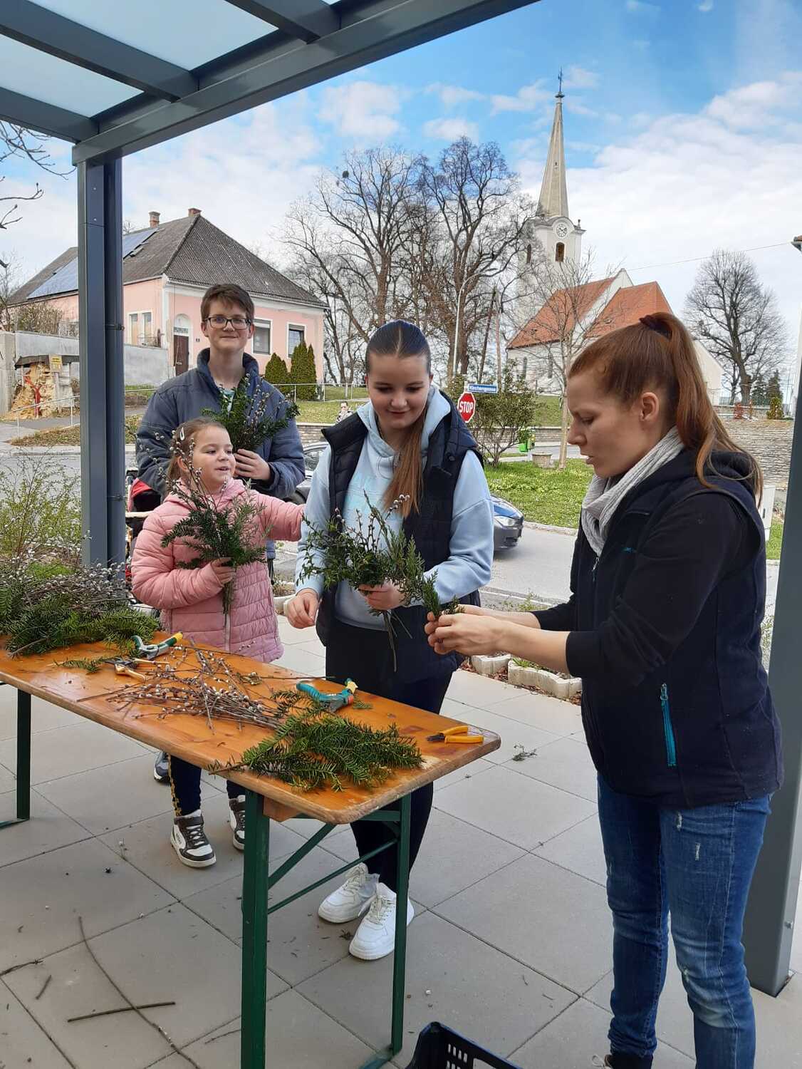 Schon Tage vor dem Palmsonntag bereiteten sich die Kinder auf diesen Tag vor und banden unter der Leitung von Jungscharleiterin Katja wunderschöne Palmbuschen für den Einzug in die Kirche Weppersdorf.