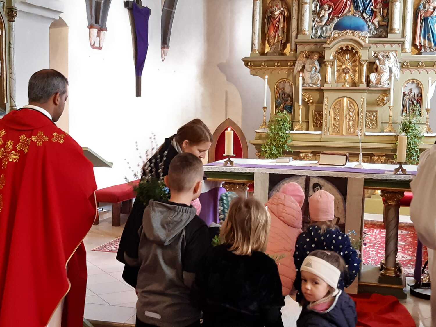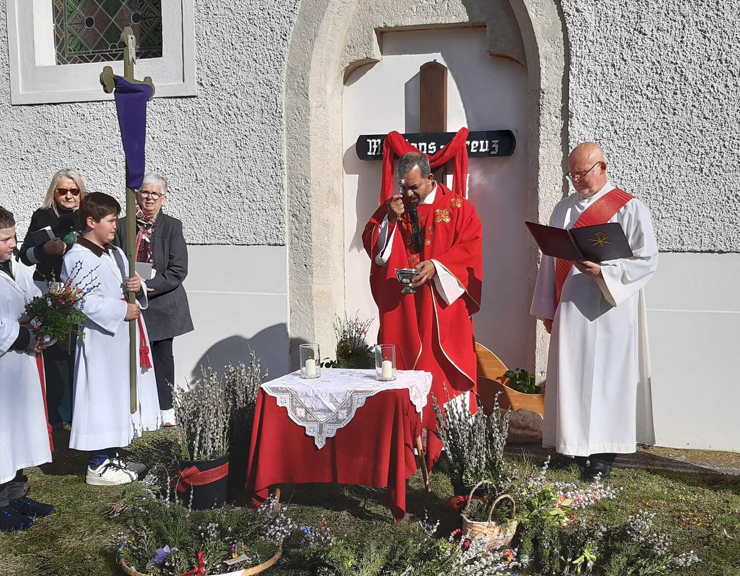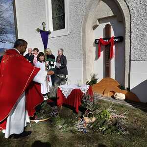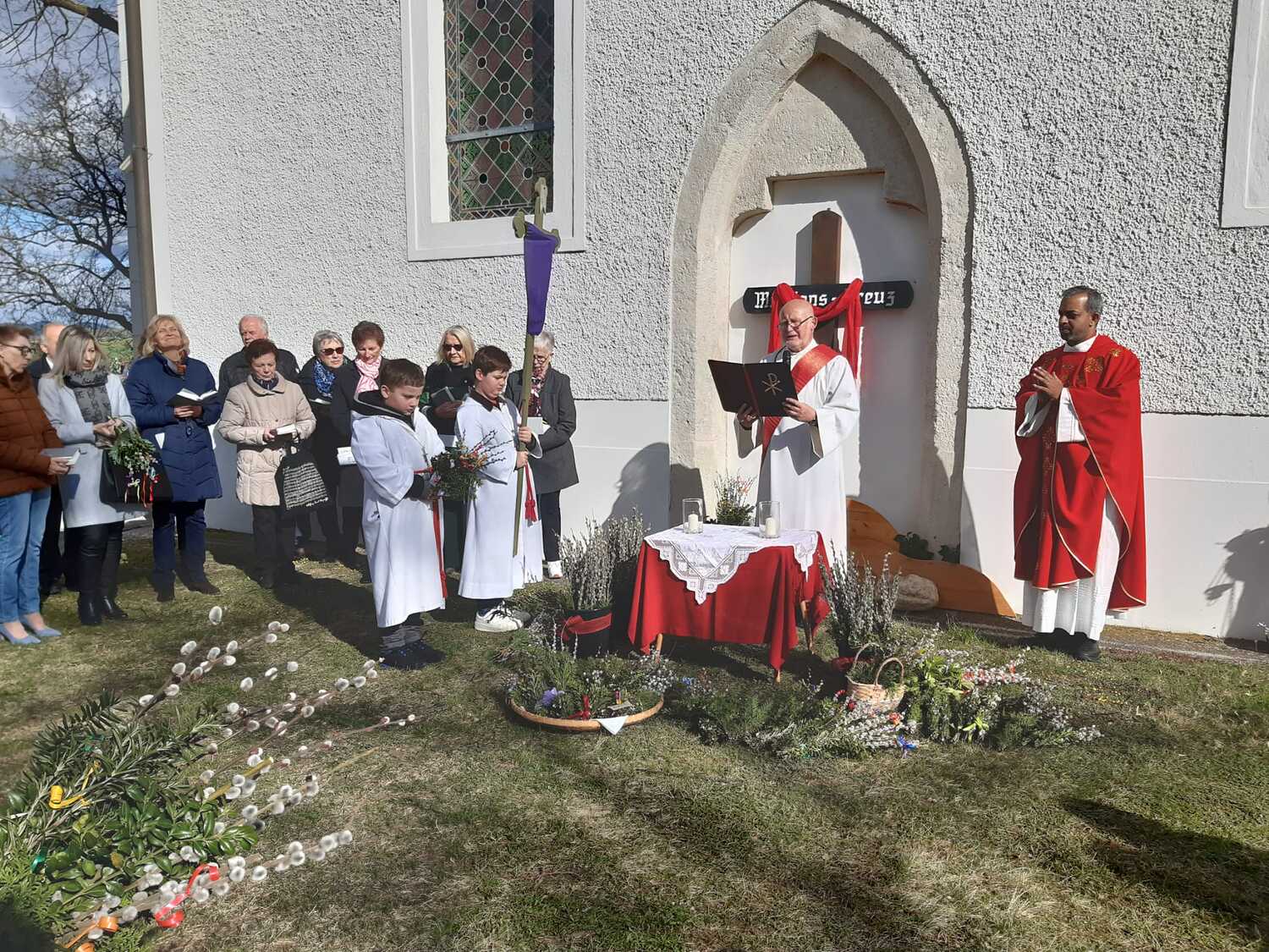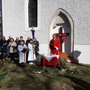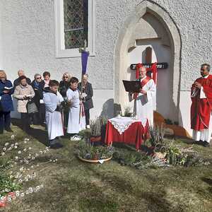 Zur Feier der Liturgie zum Palmsonntag mit Segnung der Palmbuschen trafen sich die Gläubigen der Pfarre Weppersdorf vor der Kirche und zogen in einer kurzen Prozession gemeinsam in die Kirche ein, wo dann ein wunderschön gestalteter Gottesdienst gefeiert wurde.