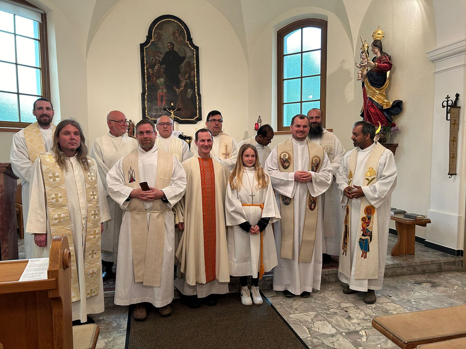 Anschließend wurden die Priester in den Gemeindesaal zu einer Agape geladen, wo es zu vielen netten Begegnungen kam. Danach trafen sich die Priester noch zum gemütlichen Austausch im Rahmen eines gemeinsamen Abendessens.