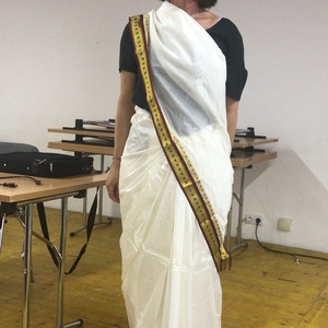 Ein Sari, das traditionelle Kleid der indischen Frau, wurde anprobiert und Pf. Shinto kleidete sich in sein aufwendig handbesticktes farbenfrohes Primiz-Festmessgewand.