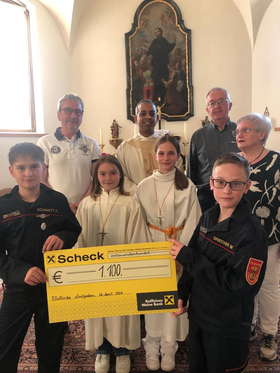 Der Reinerlös der Veranstaltung von € 1,100,- wurde am Samstag im Rahmen der Florianimesse an Pfarrer Shinto übergeben und wird für Projekte mit Kindern in der Heimat unseres Pfarrers verwendet.