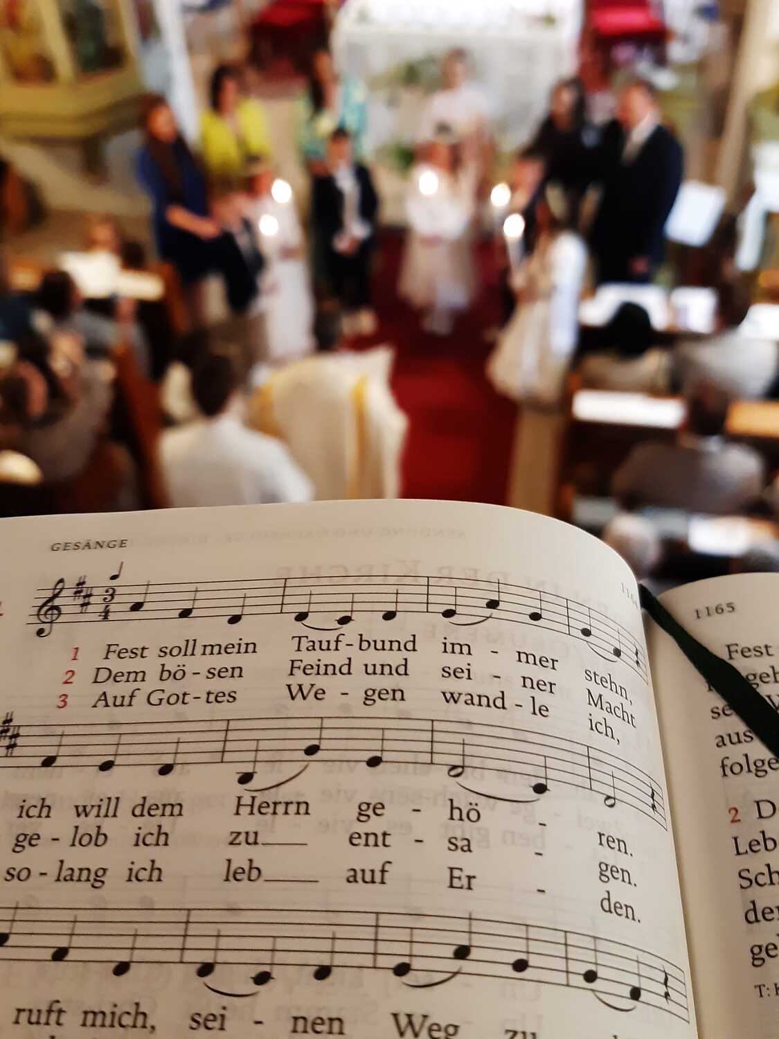 Dass die Erstkommunionkinder bei Jesus bleiben möchten bekräftigten sie nochmals bei der Tauferneuerung, bei der sie jetzt selbst mit der Taufkerze in der Hand ihr Versprechen abgeben konnten, die bei ihrer Taufe ihre Paten und Patinnen für sie gesprochen hatten.