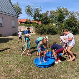 Am Freitag, dem 23. August wurde ein Sommerfest im Pfarrgarten Lackenbach organisiert, zu dem an die 30 Kinder gekommen sind. Bevor die zahlreichen Angebote an den verschiedenen Stationen ausprobiert werden konnten, haben die Kinder erstmal mit einem Kennenlernspiel begonnen. Fußball, Federball, Sackhüpfen, Volleyball, Dosenwerfen, Mikado und eine Bibel-Rätselrallye standen am Programm. Es wurde gehüpft, gelacht, getanzt und gesungen. An dem heißen Sommertag waren die Wasserschlachten ein sehr beliebter, erfrischender Spaß.