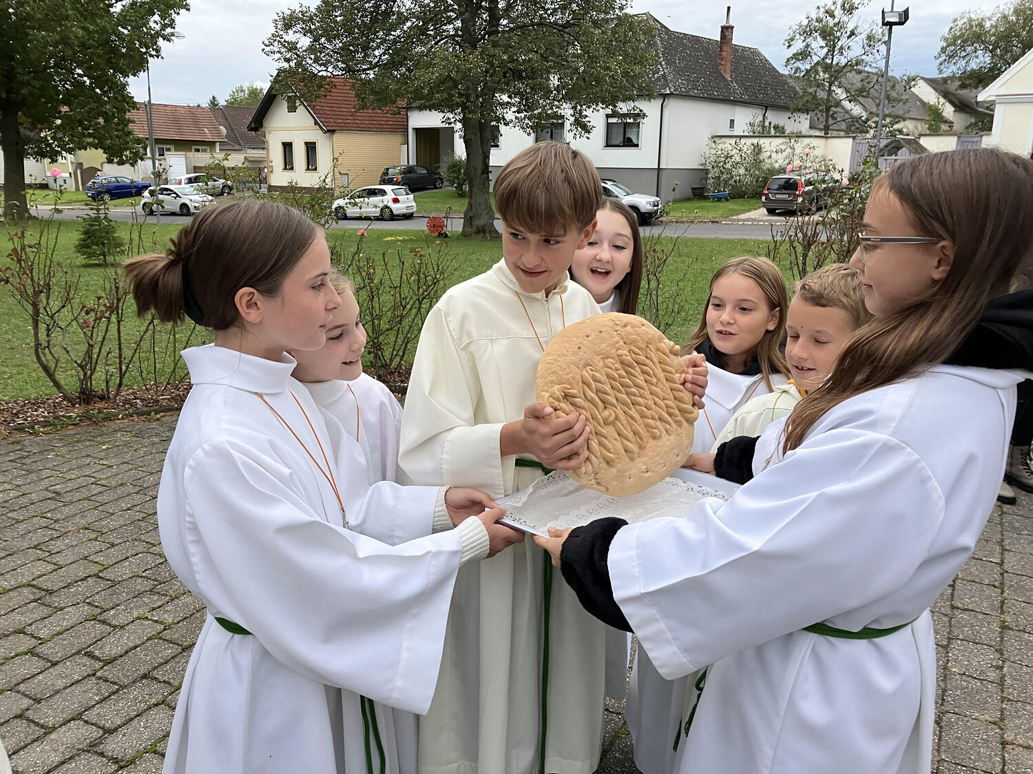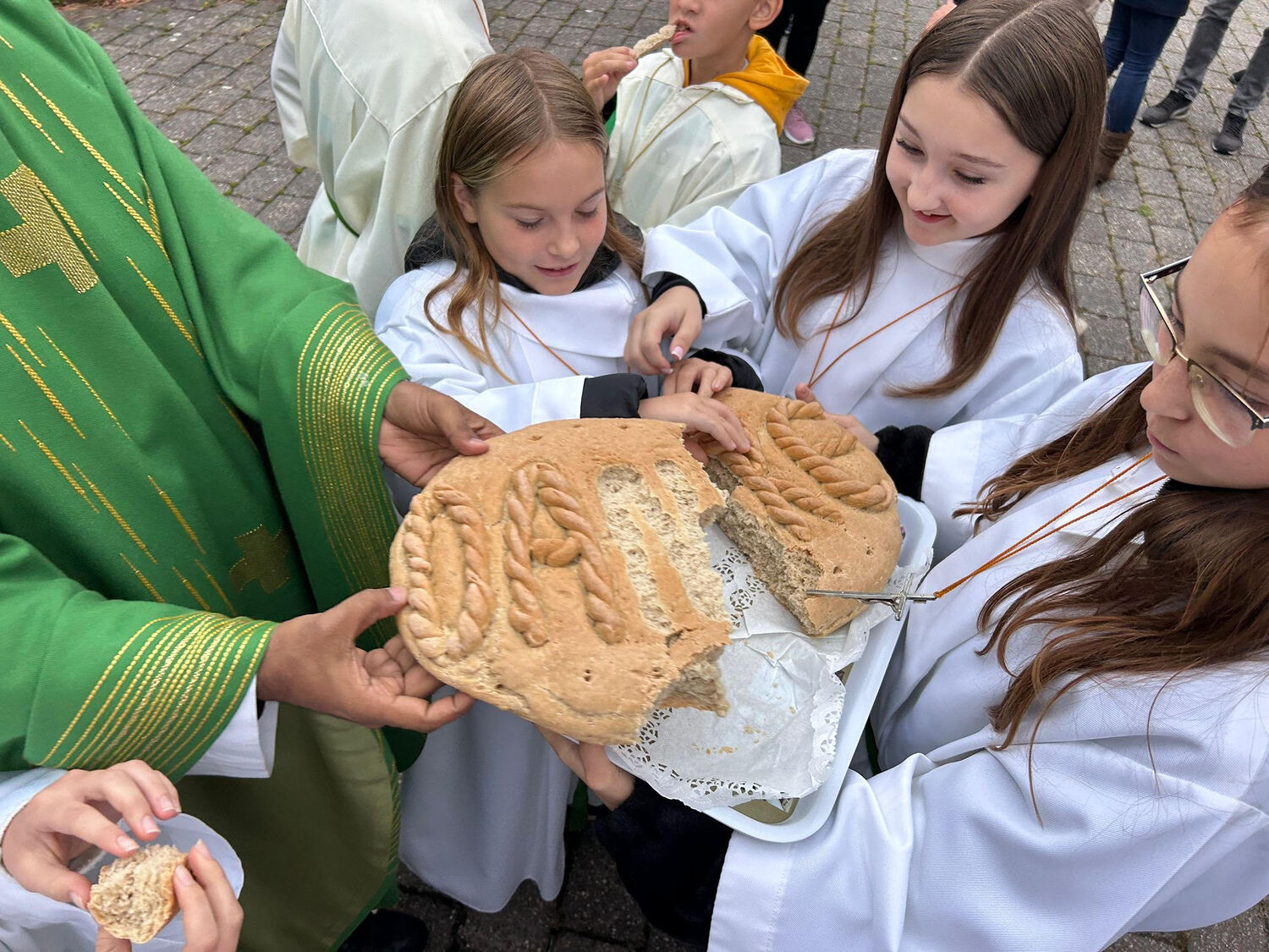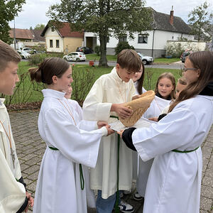 Im Anschluß wurde in Lindgraben das für das Fest extra gebackene Brot geteilt und verkostet.
