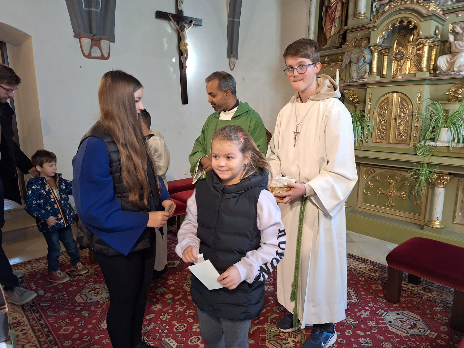 Unser Herr Pfarrer Shinto ging bereits am Beginn der Hl. Messe auf die starke, auffordernde Botschaft von Papst Franziskus ein. In seiner Predigt brachte er uns den Patron der Mission, den bald heiliggesprochenen, jungen Carlo Acutis nahe. Wir hörten von den Lebensstationen seines kurzen Lebens, das durchdrungen war von der Liebe zur Eucharistie und den Taten seiner gelebten Nächstenliebe. Pfarrer Shinto betonte die wertvolle Herzensgabe von uns, die Kollekte, die Missionsprojekte möglich machen.