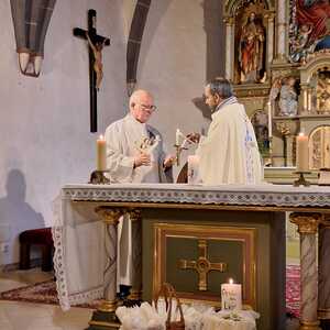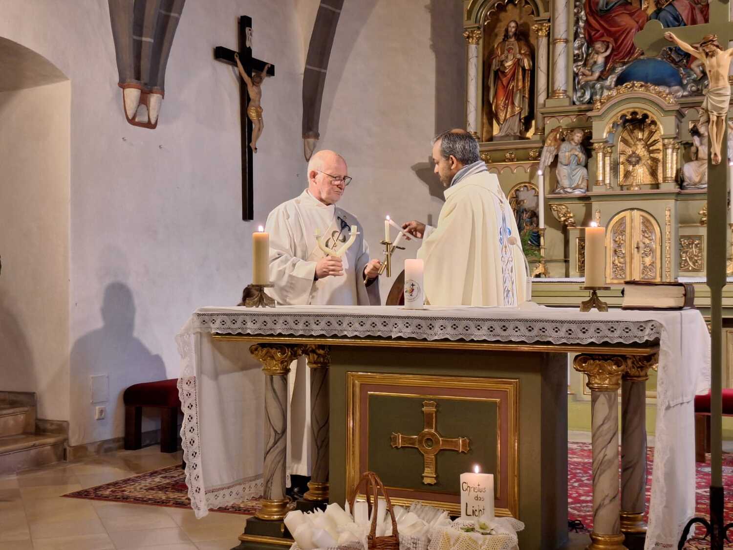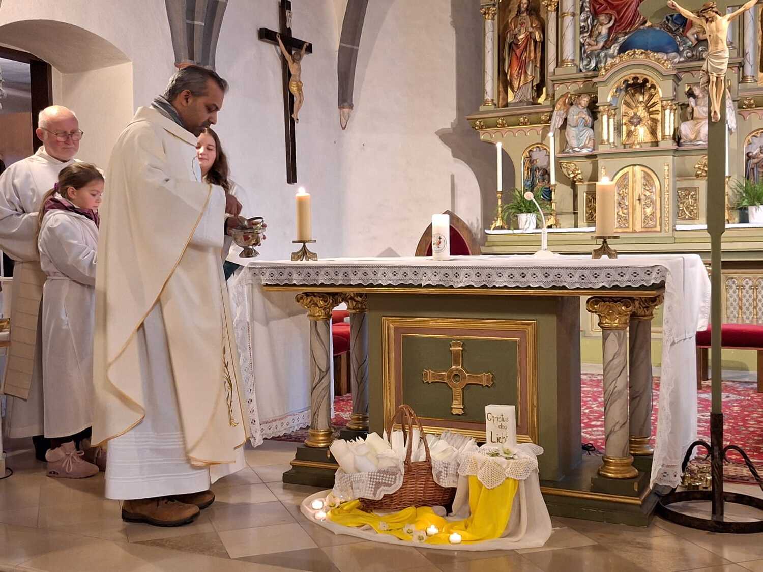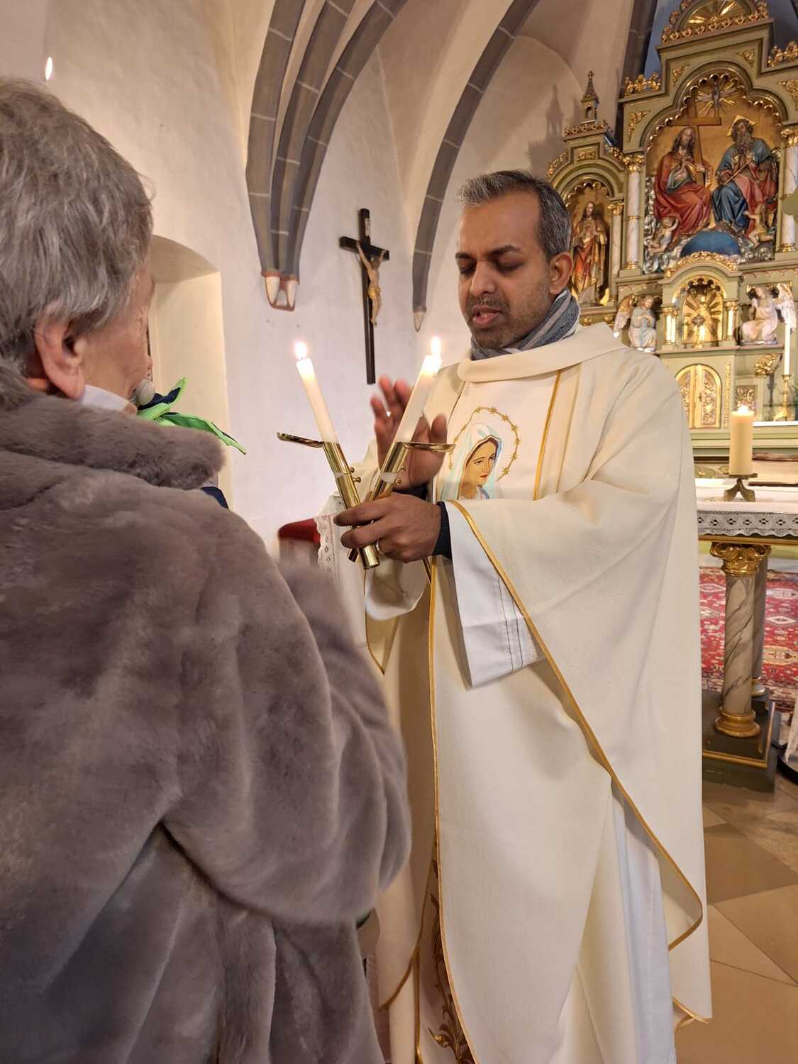 An diesem Festtag ist es eine gute Tradition, die Kerzen zu weihen, die über das Jahr in unseren Kirchen brennen, aber auch die mitgebrachten Kerzen. Diese Kerzen lassen uns an verschiedenen Orten, Anlässen und Wegmarken des Lebens das Licht der Liebe Gottes spüren: Der Gott, der da ist und mitgeht mit uns Menschen, der uns begleitet auf allen Ab- und Umwegen, uns immer wieder in seine Nähe ruft und uns seine Gegenwart spüren lässt. Der Gott, der uns in Jesus Christus versammelt um einen Tisch. Seine Gegenwart will unseren Alltag erhellen und Licht schenken auch in der Dunkelheit, wie die Kerzen, die wir in seinem Namen entzünden. Mit diesen brennenden Kerzen folgen wir seinem Licht und stellen uns mit unserem Lebenslicht unter seinen Schutz und Segen. Unser Leben ist ein Geschenk und ein Auftrag: Licht zu empfangen und Licht für andere zu werden.