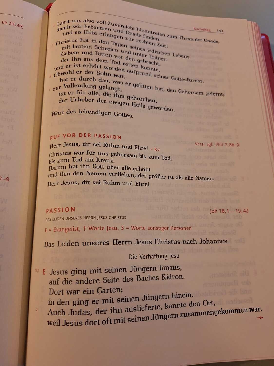 Am Karfreitag um 15 Uhr – der Todesstunde Jesu – wird in besonderer Form des Todes gedacht. Im Mittelpunkt steht die Kreuzverehrung sowie das Fürbittgebet für die Kirche und die ganze Welt.