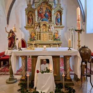 Unter der Trauergemeinde waren auch Gäste aus unserer Partnerdiözese Kanjirappally. Fünf Priesterfreunde von Pfarrer Shinto aus Kerala, die sich gerade auf Europabesuch befinden, waren Konzelebranten. Ihre Freundschaft und gemeinsamer Weg reicht in die Zeit im Knabenseminar zurück. Bevor der priesterliche Segen erbeten wurde, erhielt die Gemeinde einen Einblick in die Liturgie der Syro-malabarischen Kirche. Alle sechs Priester stimmten abwechseln ein Trauergebet an. Es beinhaltet Wechselgebete und verschiedene Psalmen, die für den Verstorbenen gesungen werden. Wir waren vom Klang und der Schönheit der Sprache Malayalam ergriffen und sehr beeindruckt.