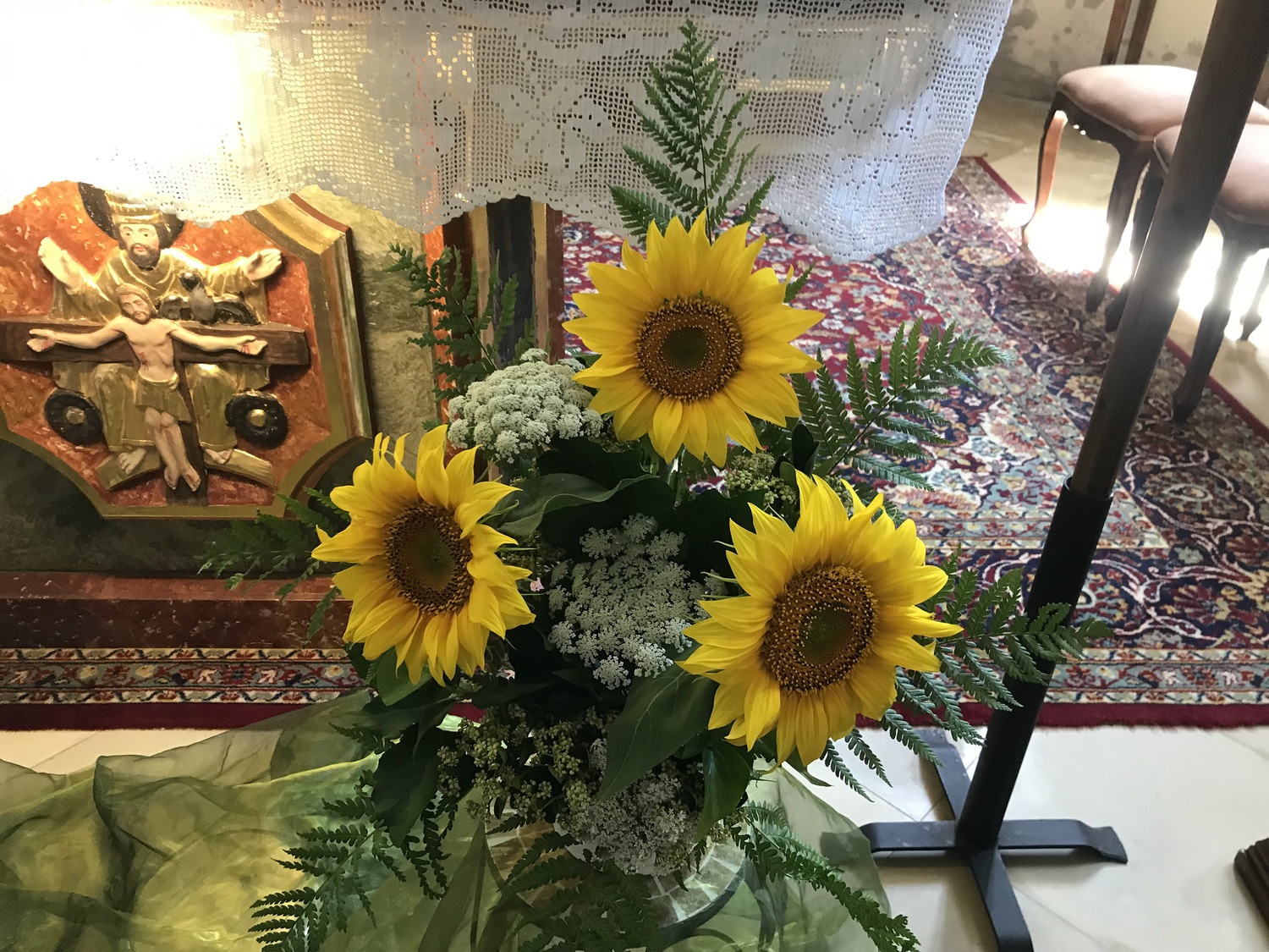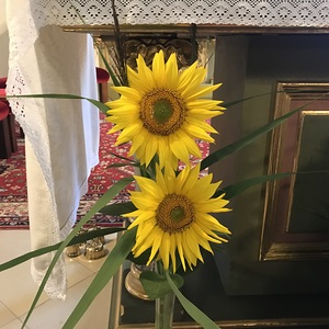 Sonnenblumen brauchen die Sonne zum Leben, sie brauchen Wärme und sie brauchen Licht, sie strecken sich der Sonne entgegen. Wenn die Sonne am Himmel wandert, dann wandern auch ihre Blüten mit. Wenn es dunkel wird, schließen sie sich und lassen ihre Köpfe hängen. Und sie haben eines gemeinsam: sie schauen immer in die gleiche Richtung und sind tief verzwurzelt.