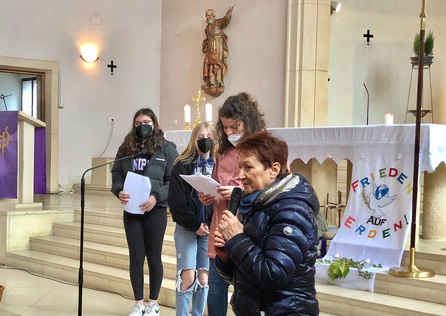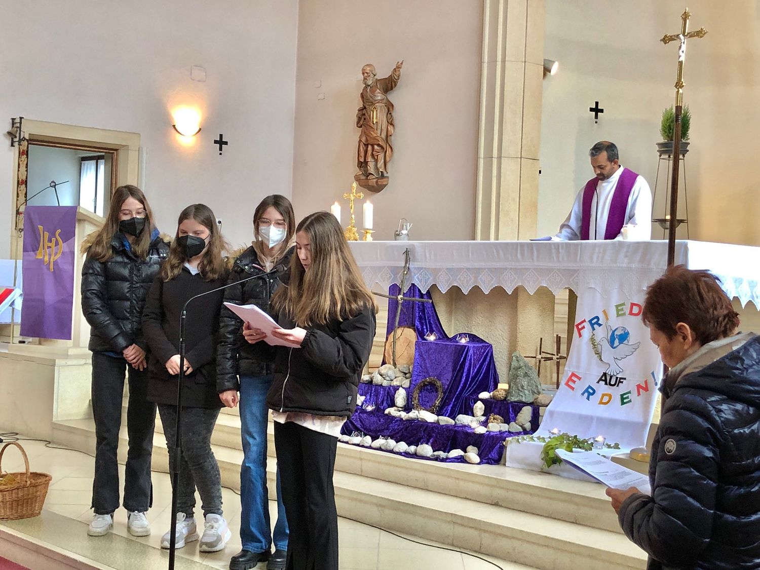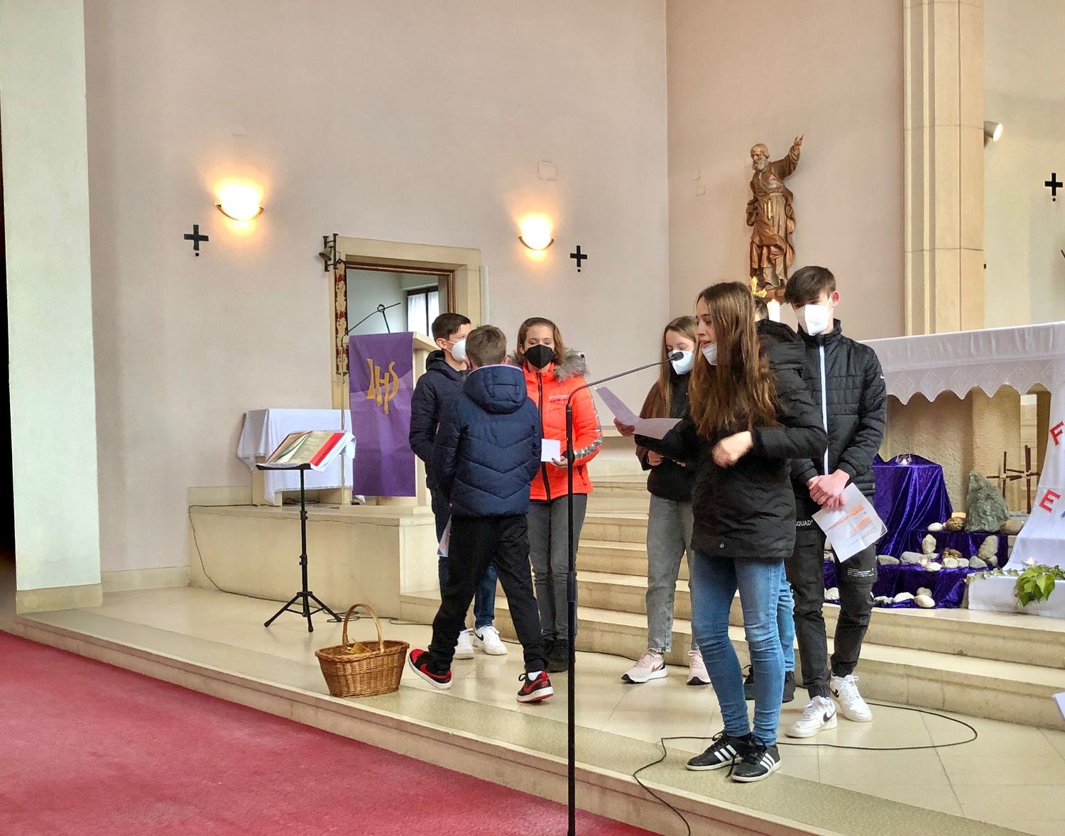 Die Jugendlichen versuchten herauszufinden, welchen Weg Christus heute geht. Bei jeder Station gaben uns die Firmlinge Impulse, was der Kreuzweg Jesu für uns und unsere Zeit bedeuten kann und wie der Kreuzweg Jesu auch zu unserem Kreuzweg wird.