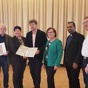 In feierlichem Rahmen wurde die Briefmarke am Samstag, dem 2. April erstmals im Rathaus Oberpullendorf vorgestellt. Eines der ersten Exemplare hat Pfarrer Shinto erhalten, der bei der Präsentation anwesend war.