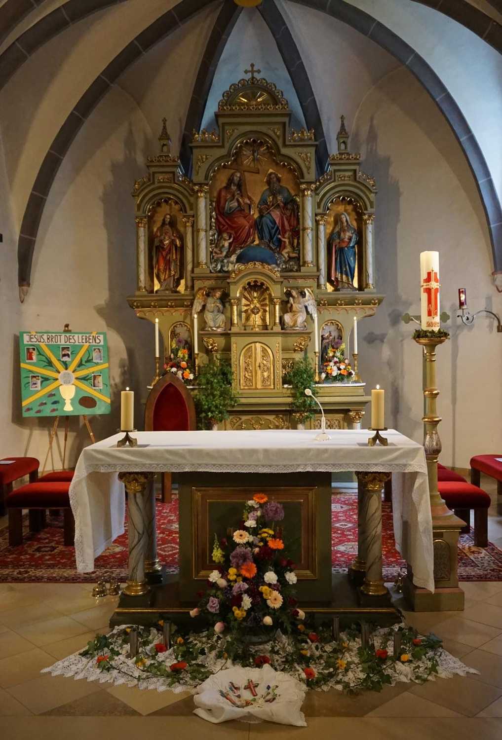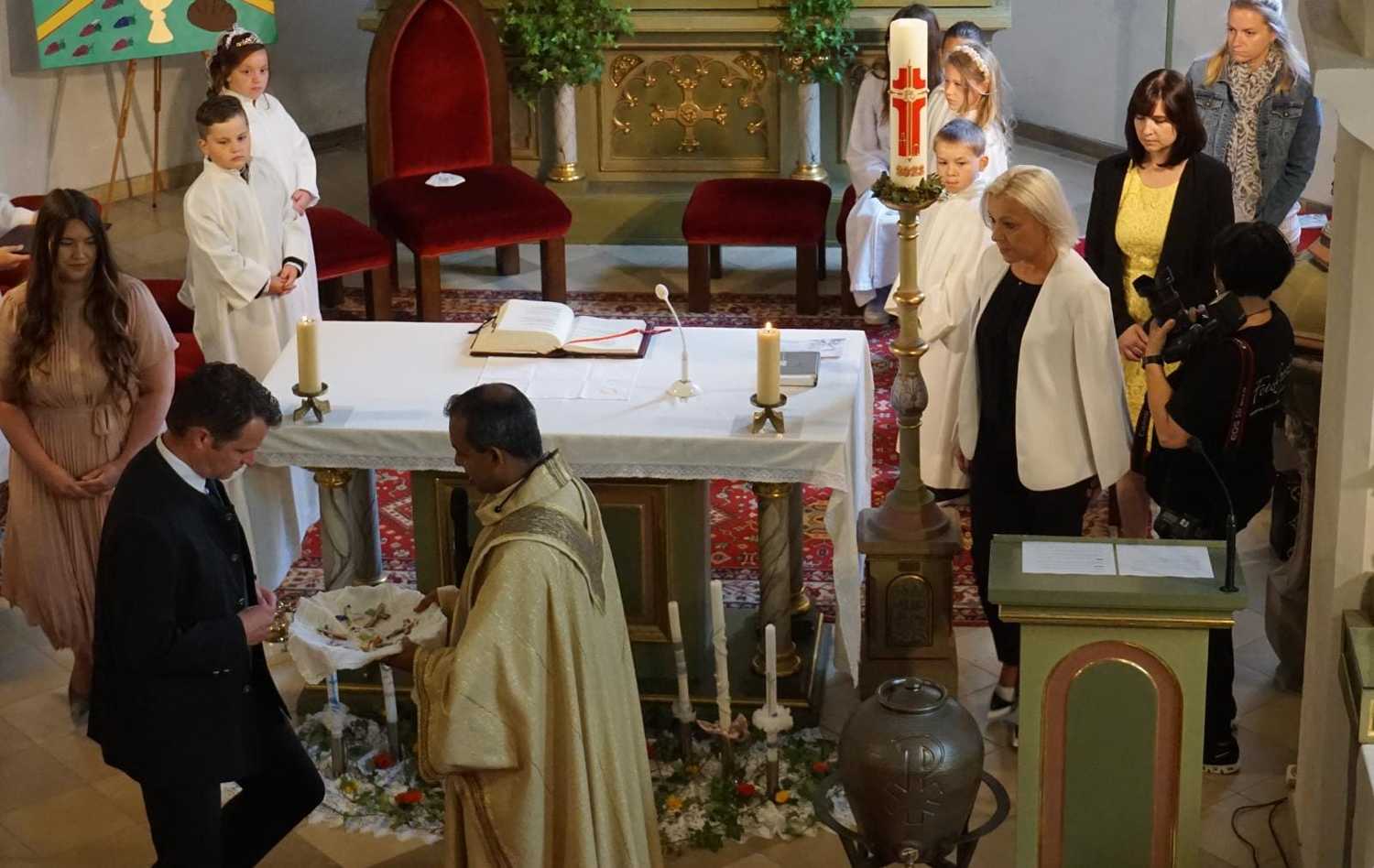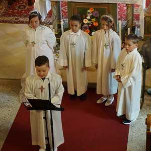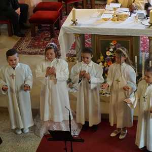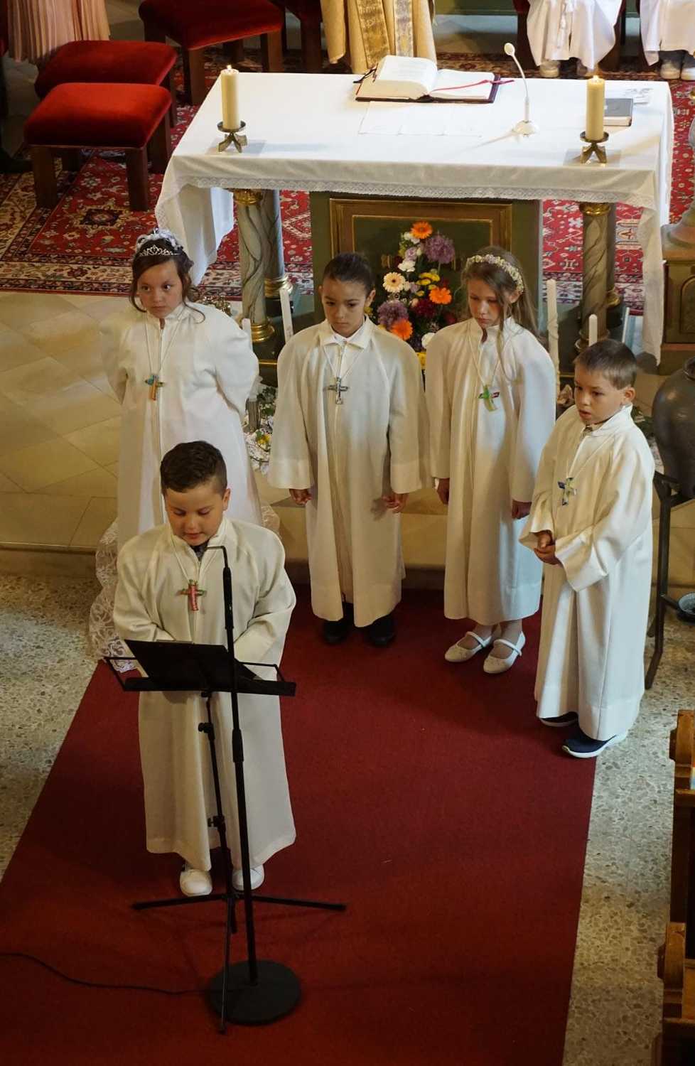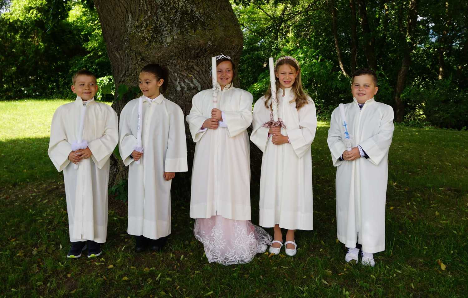 Am Samstag, dem 28. Mai wurden 5 Kinder in die Mahlgemeinschaft Jesu aufgenommen. Sie zogen mit ihren Paten, der Frau Religionslehrerin und den brennenden Taufkerzen in die wunderschön geschmückte Kirche ein und feierten ein Fest, das ihnen lange in Erinnerung bleiben wird.