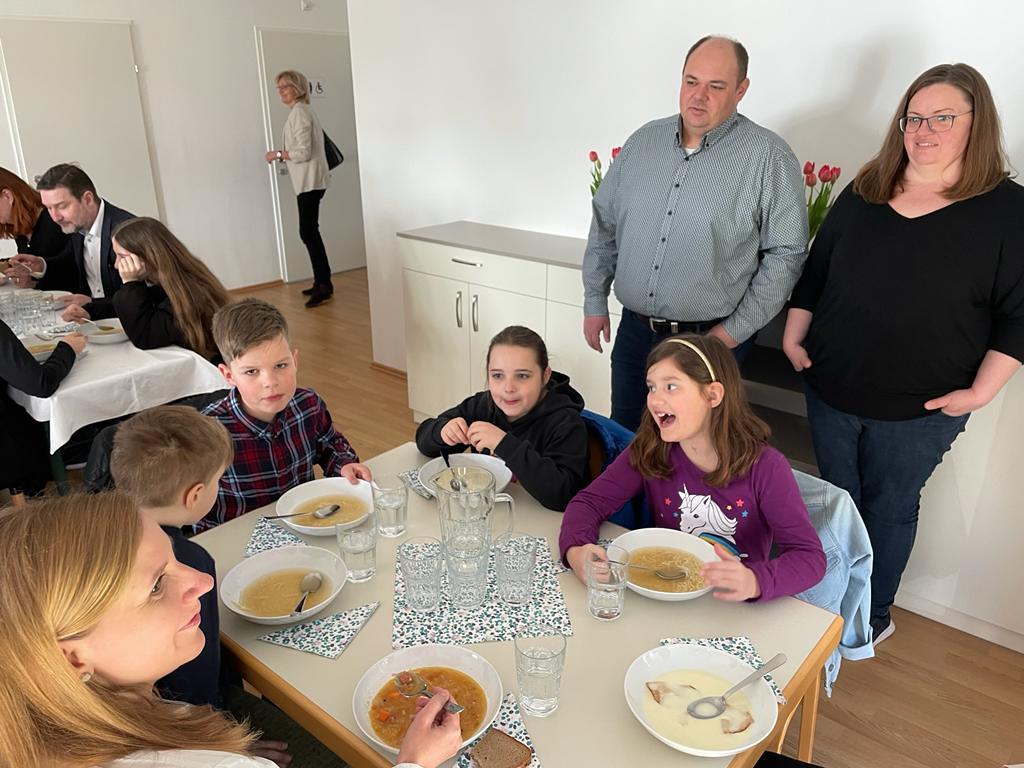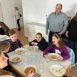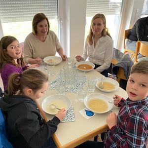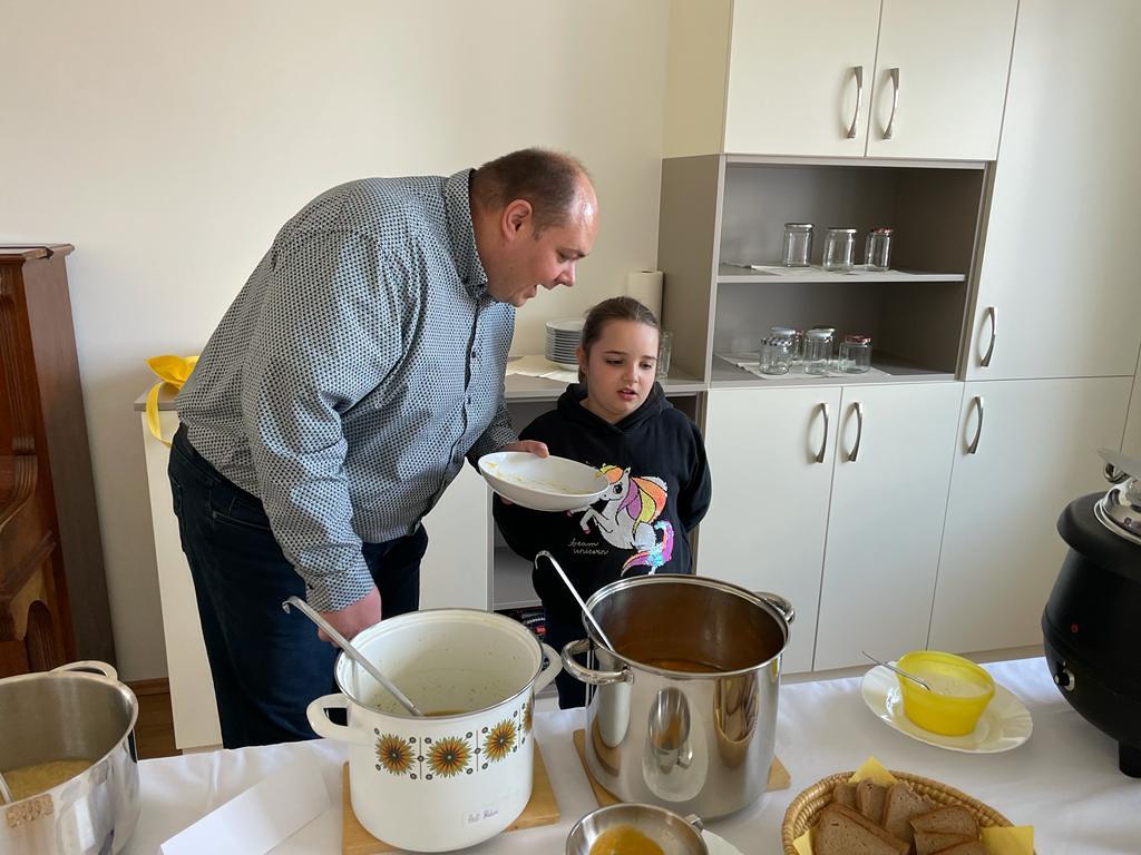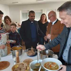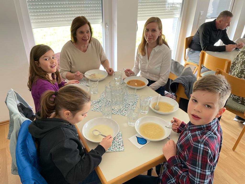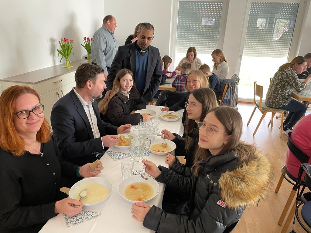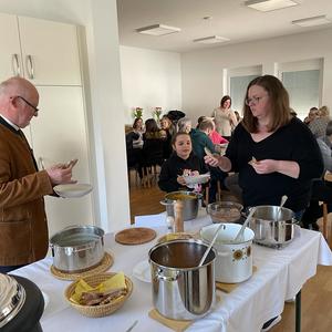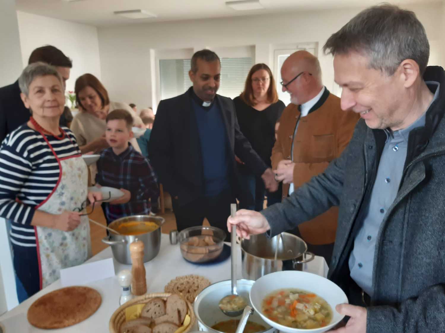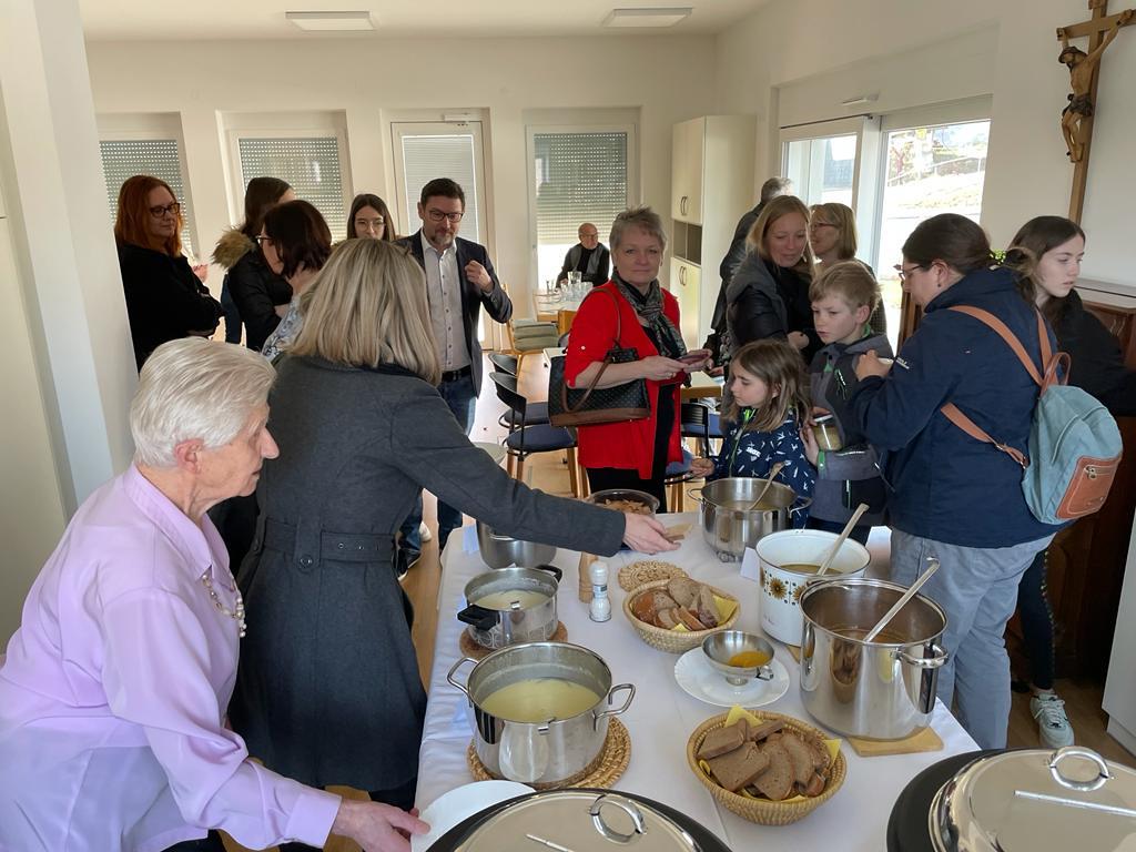 Segen sein und gutes Tun wurde gleich im Anschluss an den Kindergottesdienst fortgesetzt, denn es fand im Pfarrheim zur Aktion Familienfasttag das Fastensuppen- Essen statt.