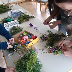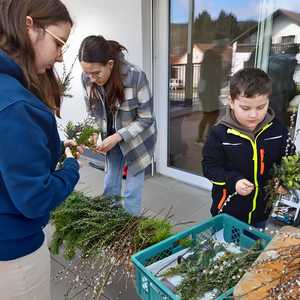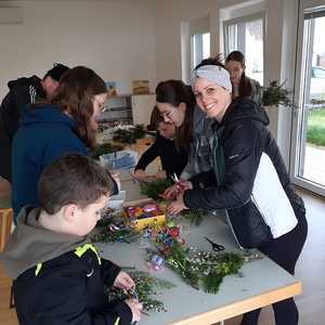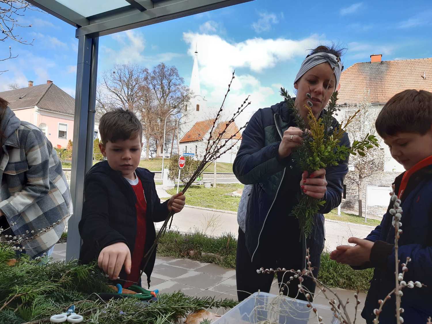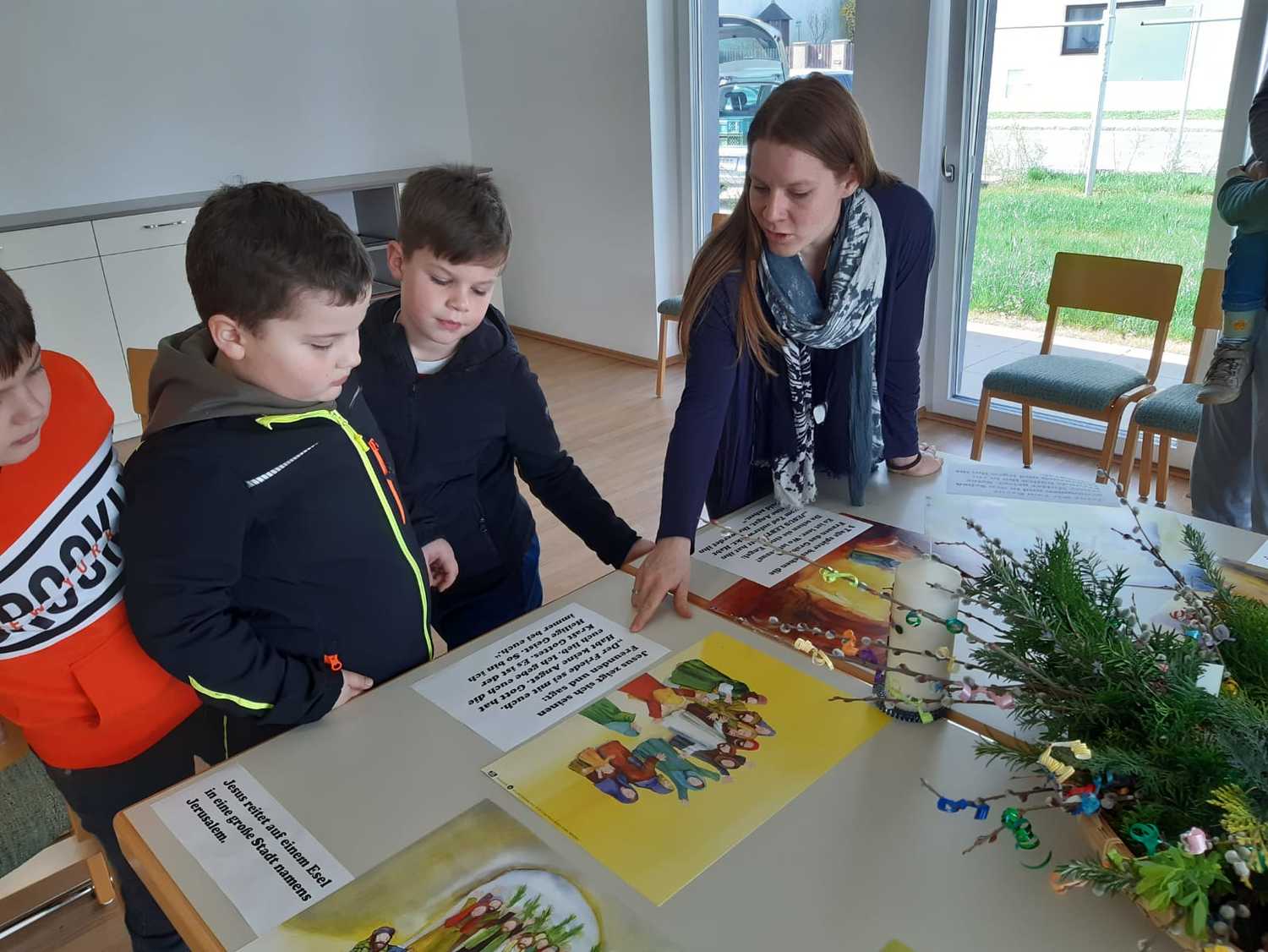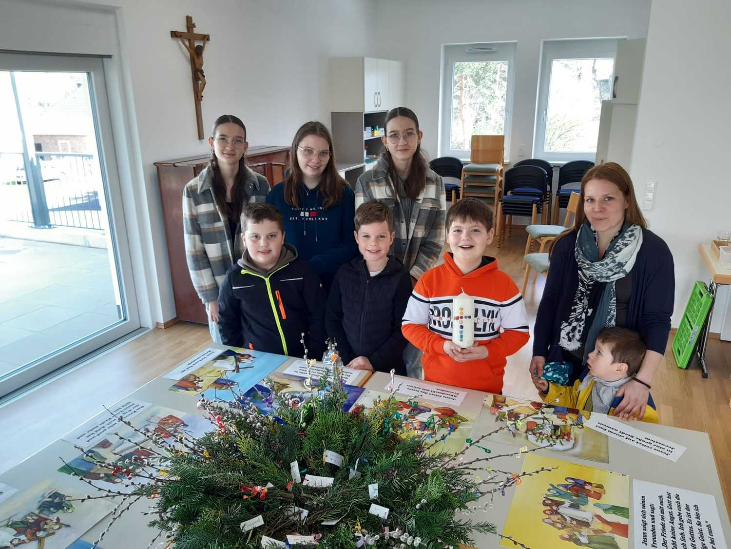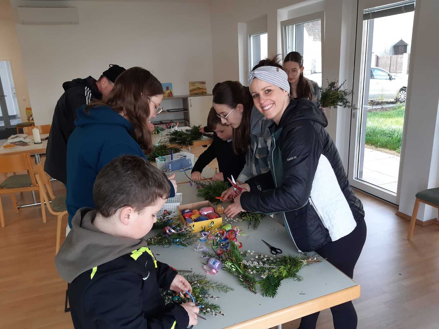 Damit auch wir unsere Freude zeigen können und so wie die Menschen damals Jesus begrüßen können, haben die Kinder unter Anleitung von Jungscharleiterin Katja und Tischmutter Carina wunderschöne Palmbuschen mit den Kindern gebunden. Gemeinsam wurde auch eine Kerze für den Pfarrhof gebastelt und die Fenster des Pfarrhofes wurden mit Bildern und Texten der Karwoche geschmückt.