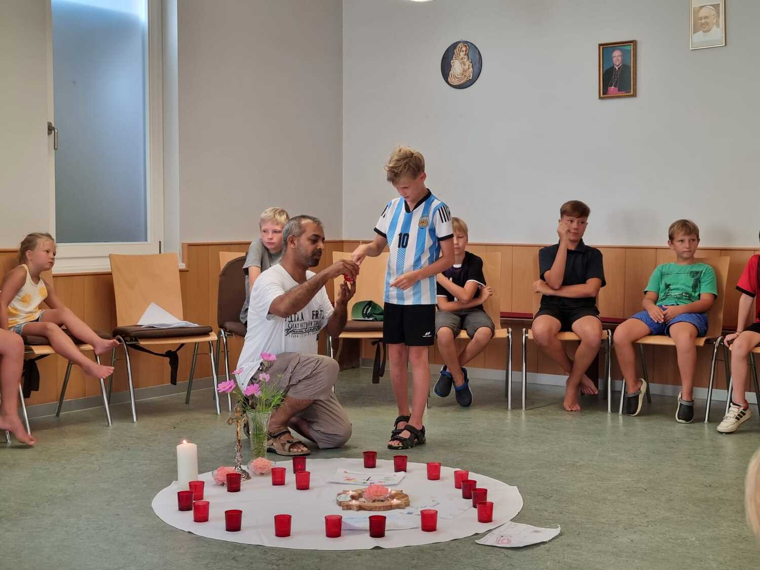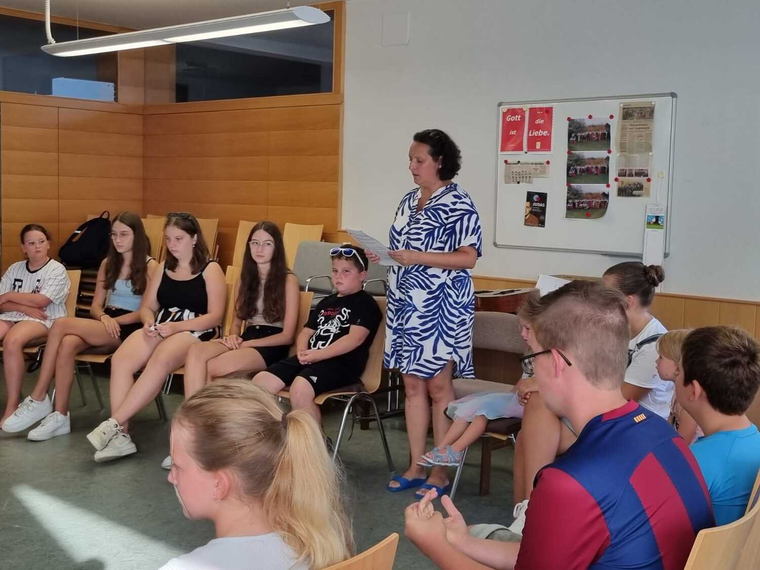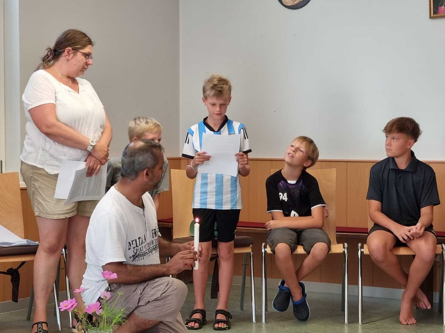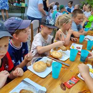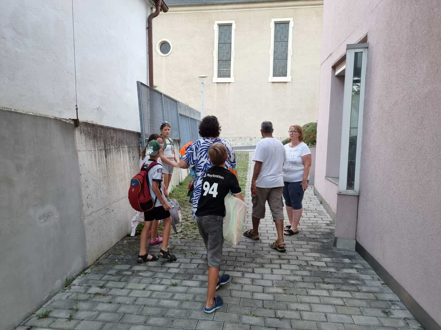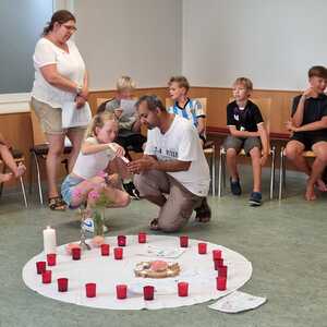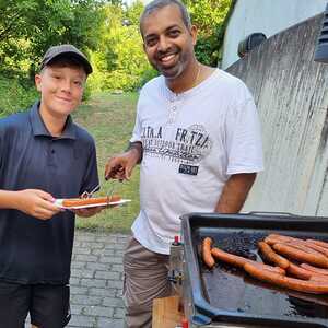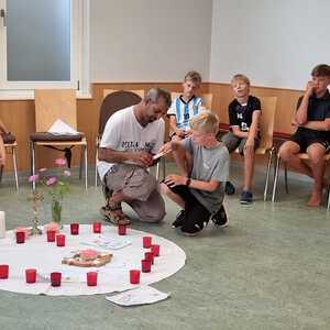 Um 17 Uhr trafen wir uns zu einer gemeinsamen Andacht im Pfarrsaal, wo wir zusammen unser Abendgebet sprachen. Anschließend wurde im Hof gegrillt und wir konnten beim gemeinsamen Abendessen den Tag ausklingen lassen.