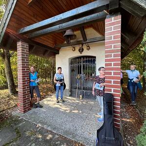 Bei der 1. Station ein Marterl mit einer Pietastatue wurden meditative Gedanken und Gebete gelesen und ein Marienlied gesungen. Danach ging es weiter Richtung Lindgraben zum Ökumenischen Kreuz. Bei zwei weiteren Stationen war Zeit zum Innehalten. Angeleitet durch meditative Texte, Gesprächsanregungen bzw. auch in Stille nachzudenken ging es weiter bis zur Florianikapelle.