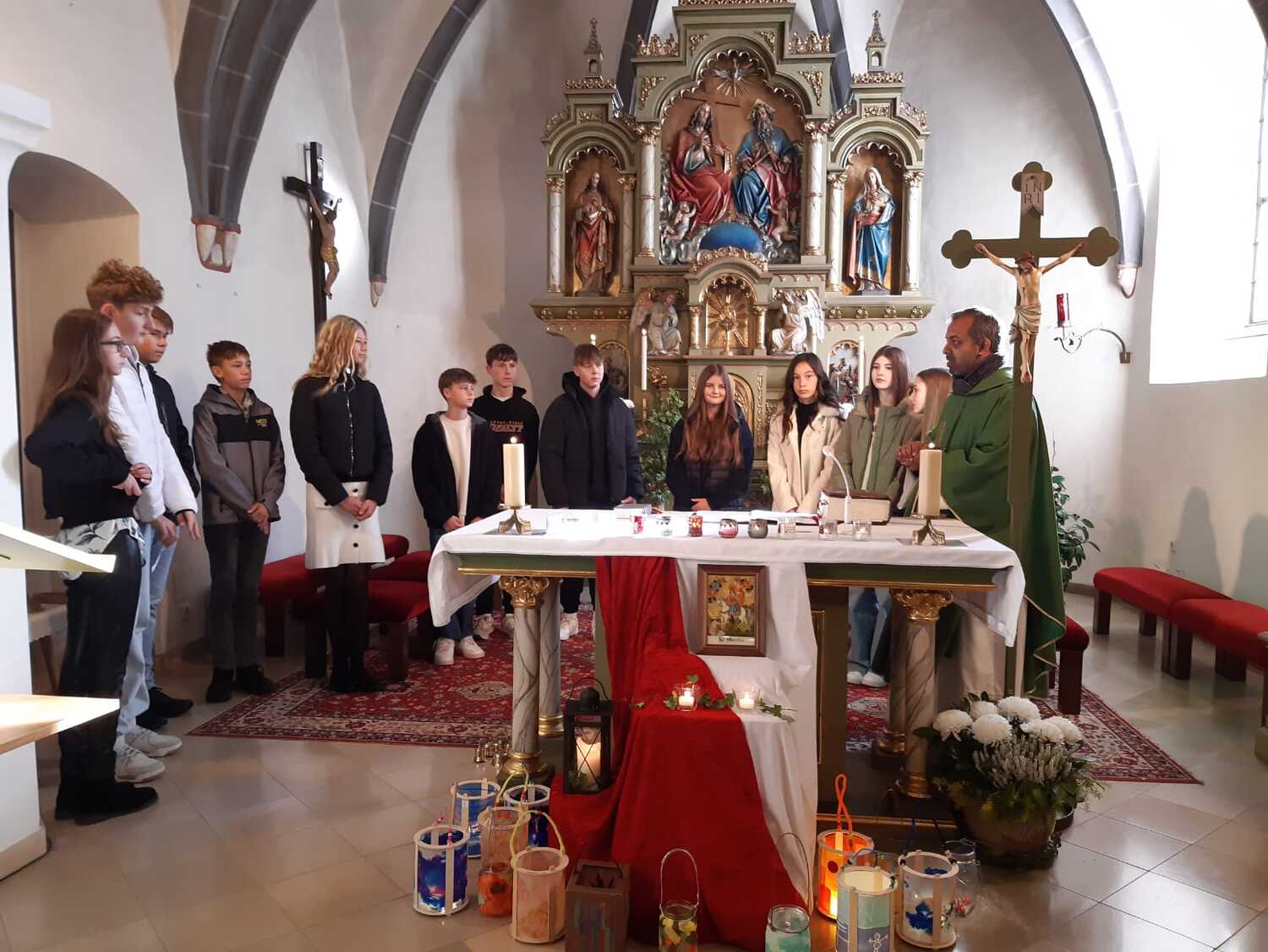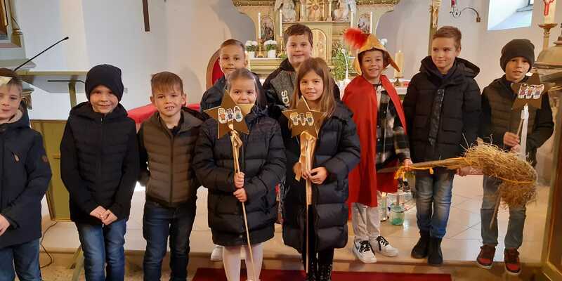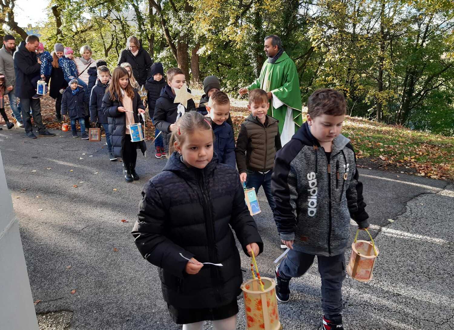 Nach der Predigt präsentierten die Kinder ein Martinsspiel der etwas anderen Art. Der Hl. Martin soll eine wichtige Botschaft in die nächste Stadt bringen und die Menschen wollen ihm dabei helfen und teilen mit ihm verschiedene Dinge für seine Reise. Aber auch Zuversicht und Mut haben ihm die Menschen mitgegeben.