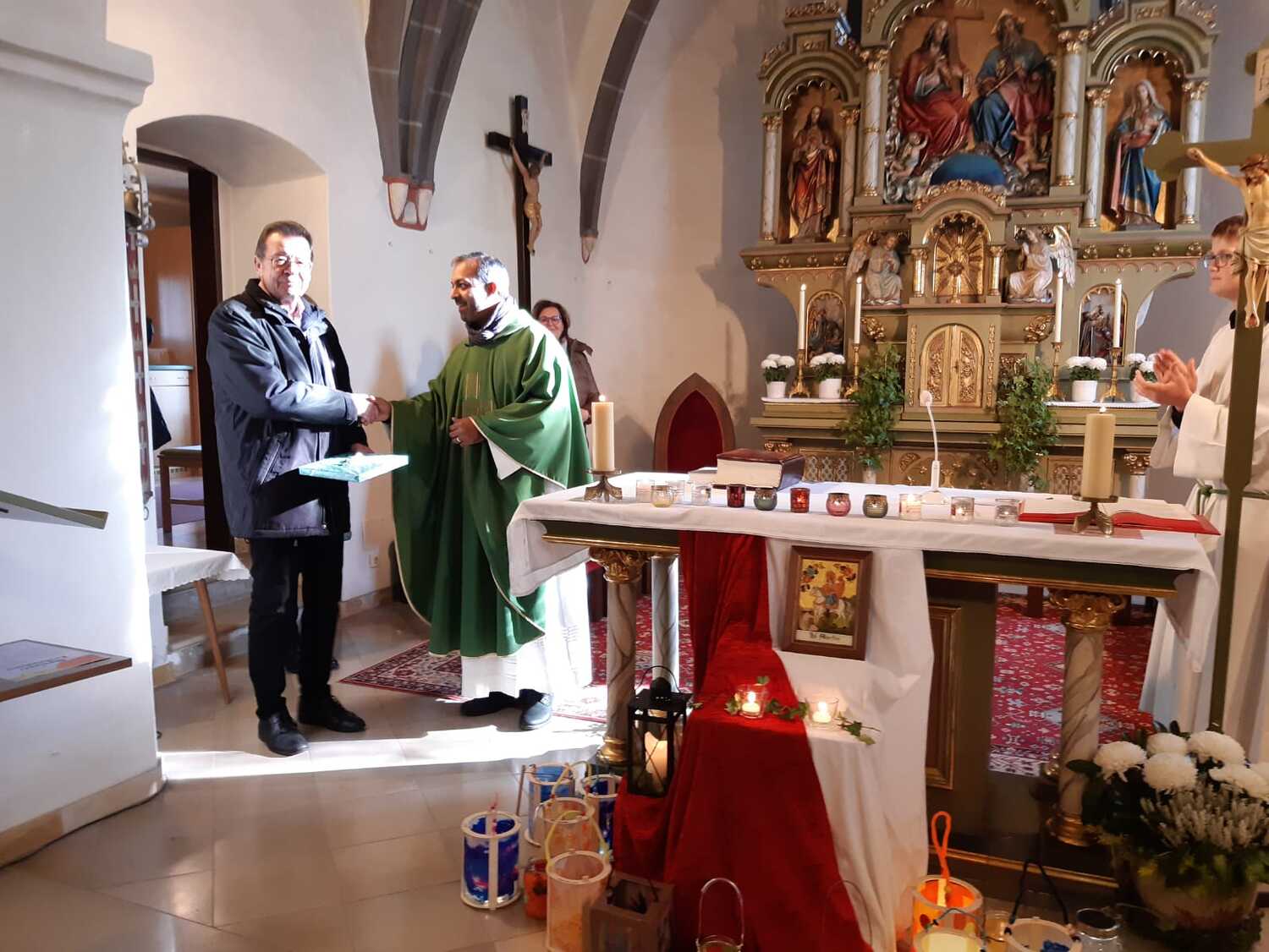Zum Schluß entsendete Pfarrer Shinto noch Frau Maria Winterer und Frau Marianna Kovaschits als neue Kommunionhelferinnen in ihren Dienst.