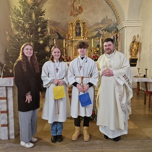 Gute acht Jahre haben Sophie Schütz und Jakob Reisner ihren Dienst als Ministranten getan. Die Pfarrgemeinde darf sich nun sehr herzlich für die tolle Arbeit bedanken. Wir wünschen weiterhin alles Gute und Gottes Segen auf dem weiteren Lebensweg!