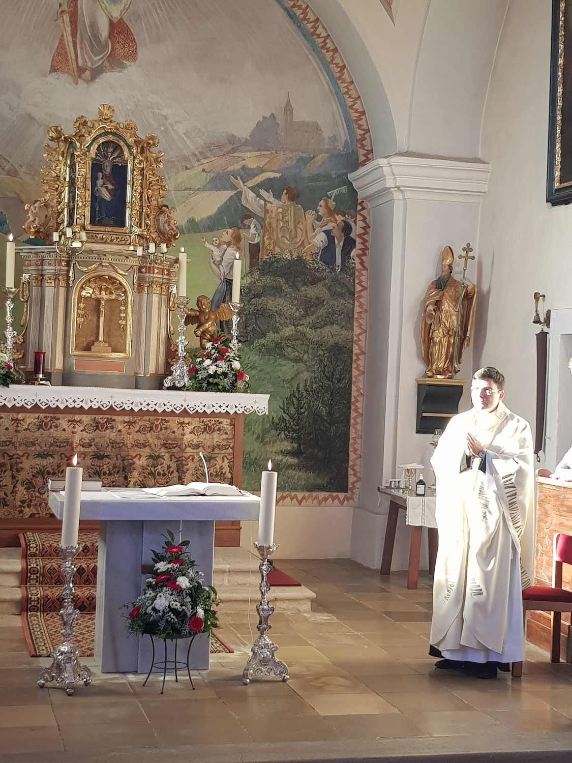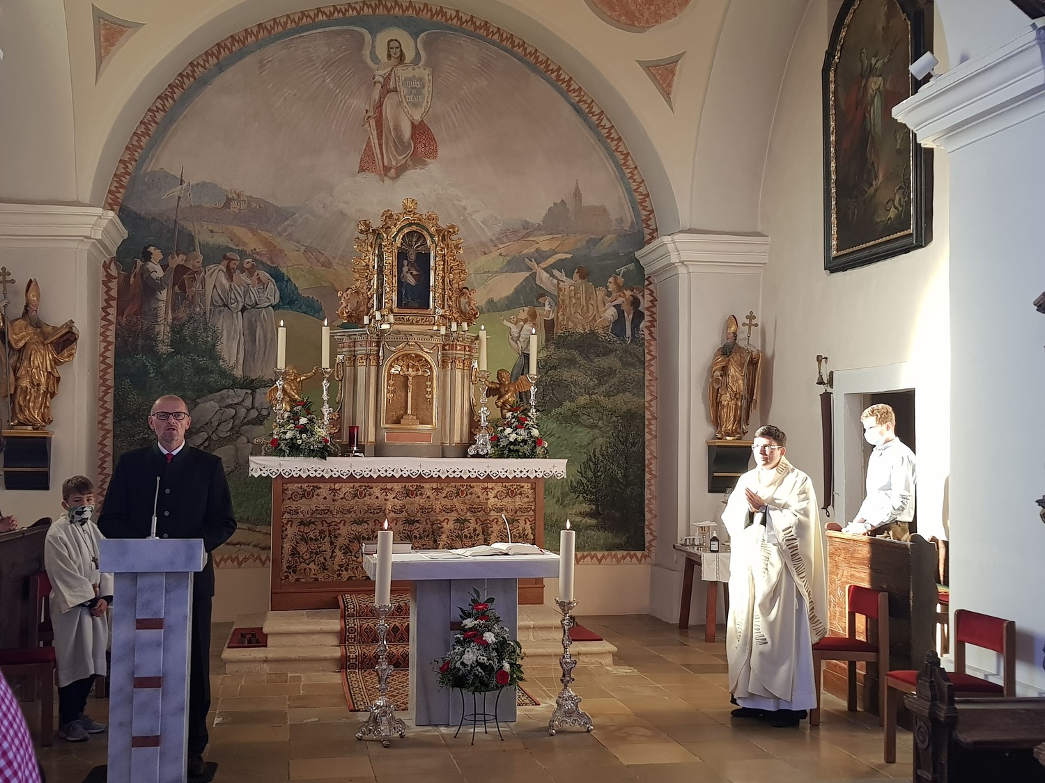 Zum Festtag des Hl. Michaels durften wir einen besonderen Gast begrüßen. P. Matthias Gabriel COp feierte die Eucharistiefeier mit uns und spendete anschließend unter Einhaltung der Corona-Maßnahmen den Primizsegen. Die Festmesse wurde von den Wiesmathern musikalisch umrahmt.