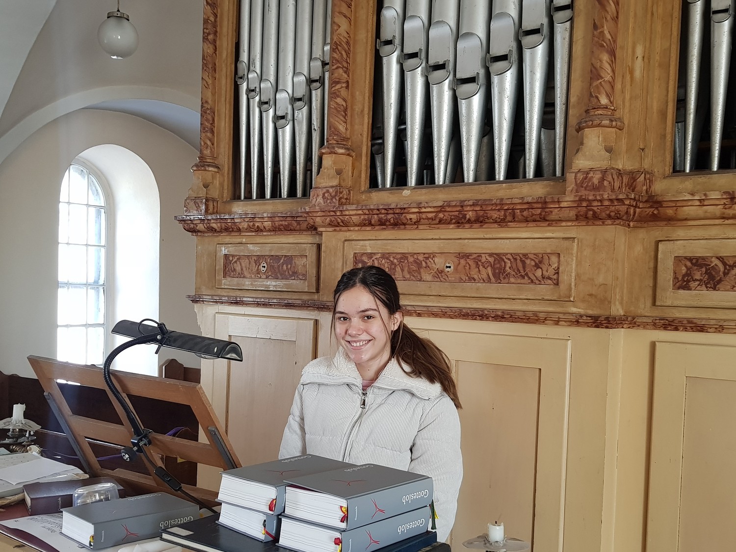 Michaela Schmit heißt unsere neue junge Organistin. Sie wohnt in Markt St. Martin und wird uns ab sofort, so oft als möglich musikalisch unterstützen. Wir sind begeistert und wünschen Michaela sehr viel Freude bei diesem wertvollen Dienst!