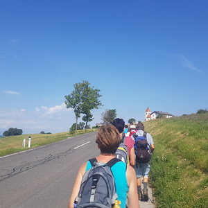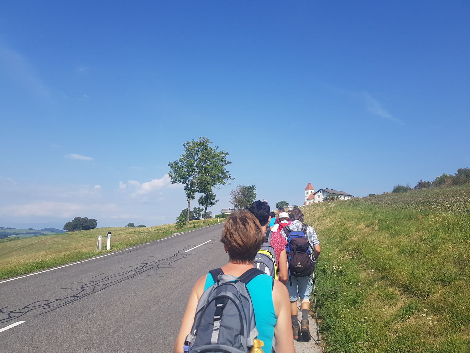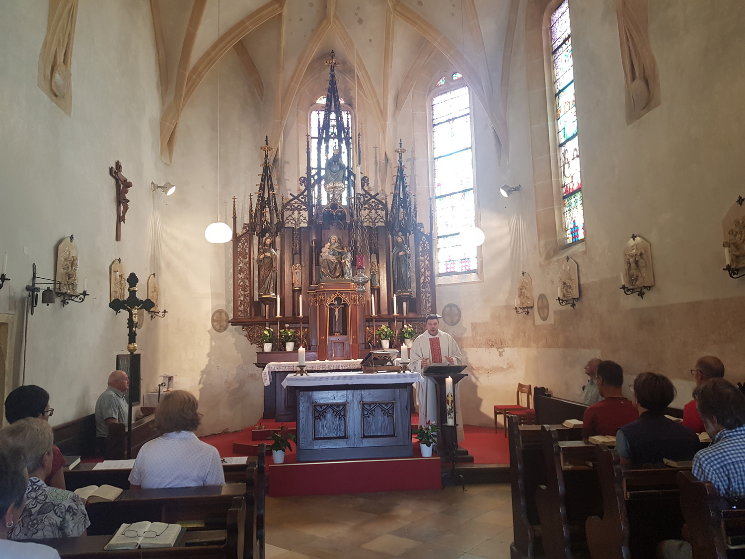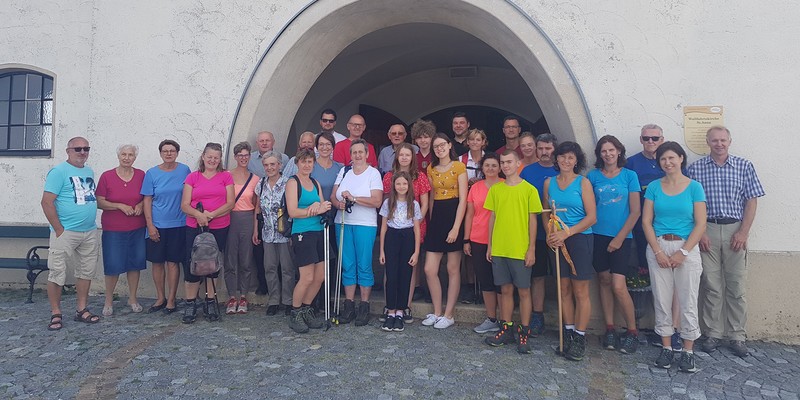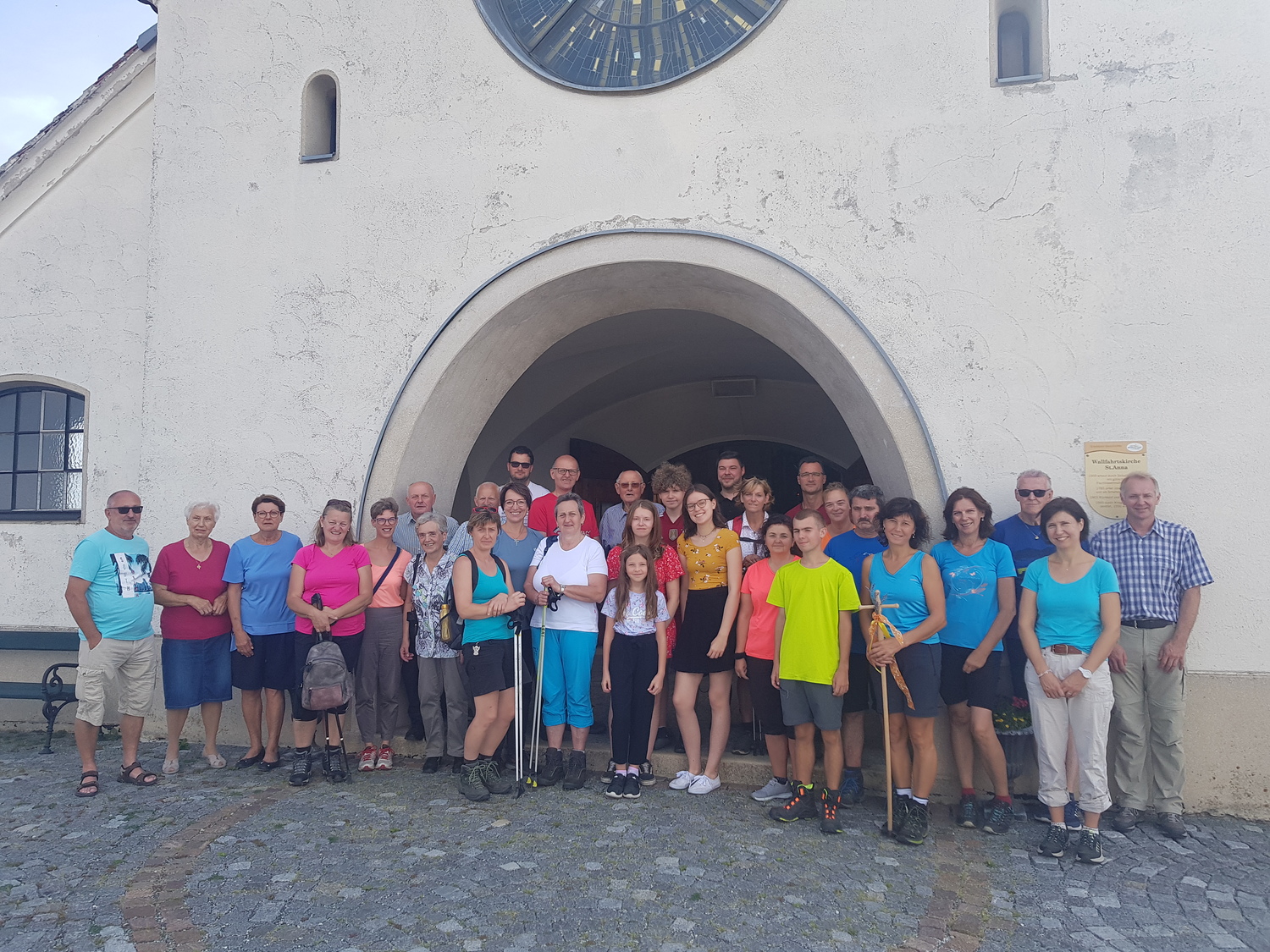Das Ziel der diesjährigen Fußwallfahrt war die Annakirche in Wiesmath. Die Strecke führte über die Neumühle und Beistein zum Annaberg. Der gemeinsame Weg wurde mit Liedern und Gebeten gestaltet. Bei der Kirche angekommen wurde schließlich die Hl. Messe gefeiert.