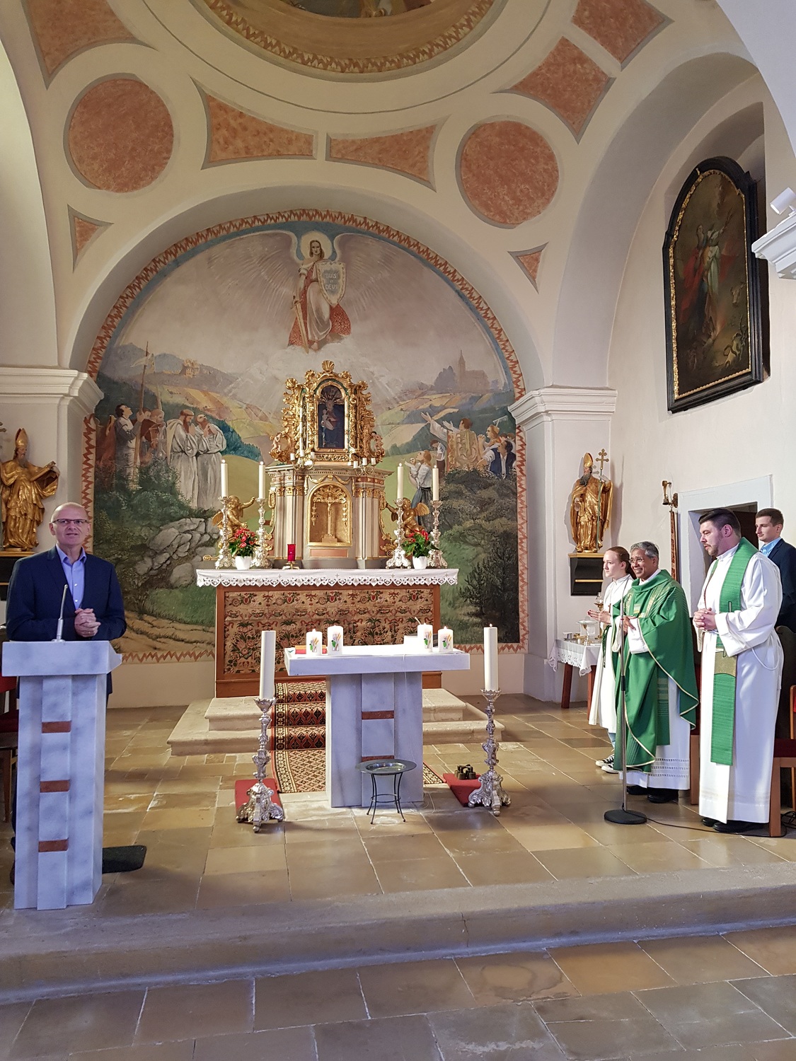 Bei der ersten Eucharistiefeier in unserer Pfarrkirche durften wir durch Kurator Bernhard Reisner herzliche Begrüßungsworte aussprechen. Die Freude ist sehr groß!