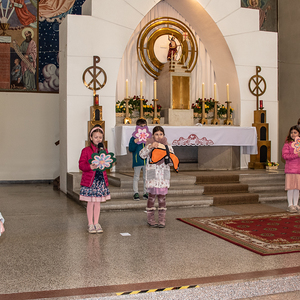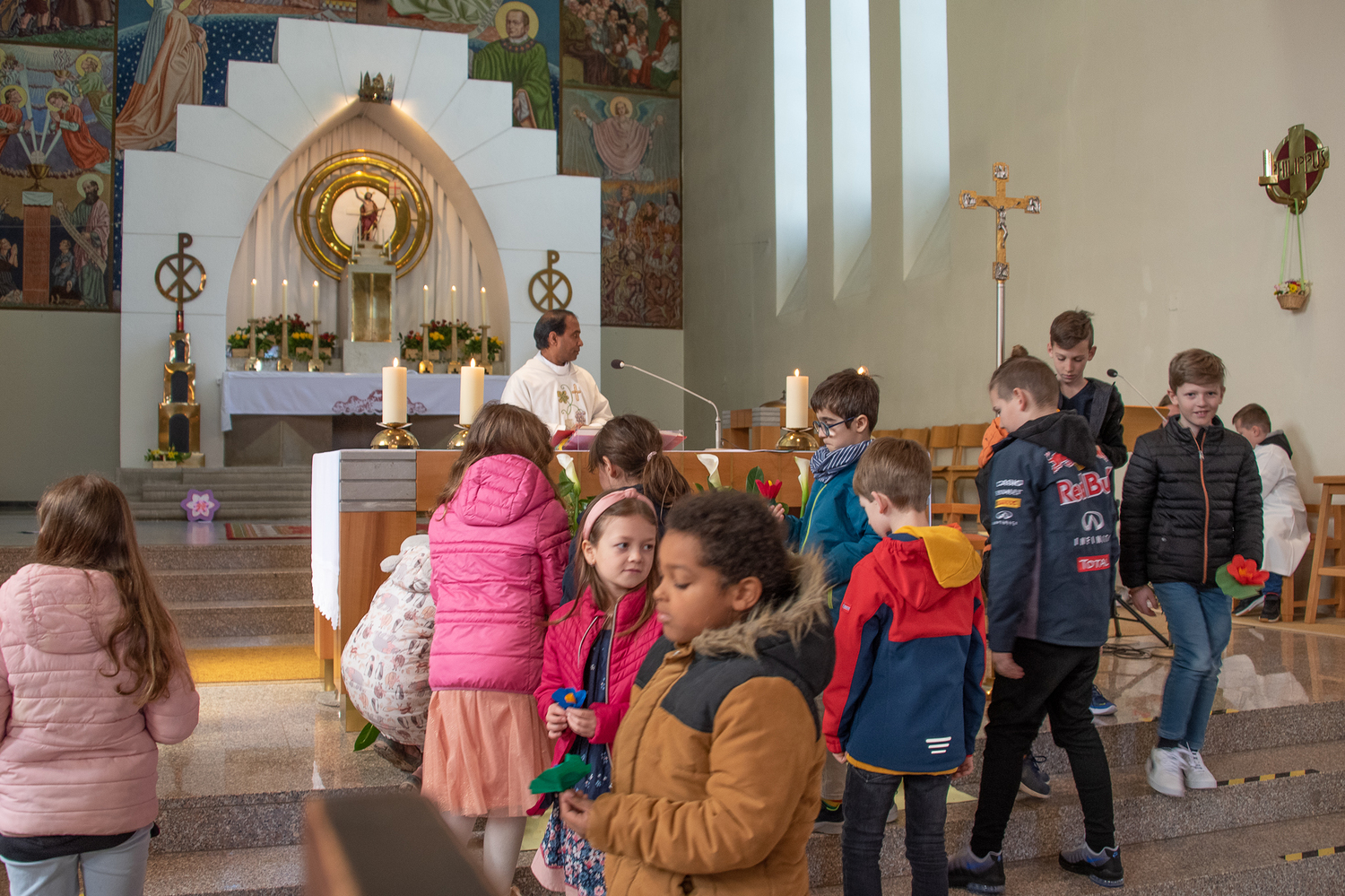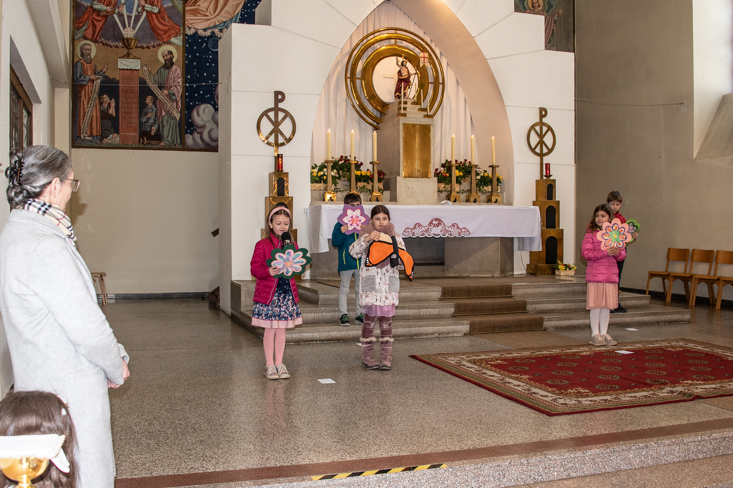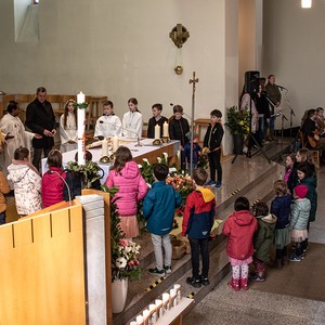 In der Familienmesse am Ostermontag steckten die Kinder alle Gottesdienstbesucher mit ihrer Freude an. Dazu trugen auch die Lesungen von der Verwandlung der Emmaus-Jünger, die Geschichte von Raupe und Schmetterling und besonders die Prozession durch die Kirche bei. Die Lieder wurden von der Musikgruppe Arabesque wieder so fröhlich und wunderschön gesungen.