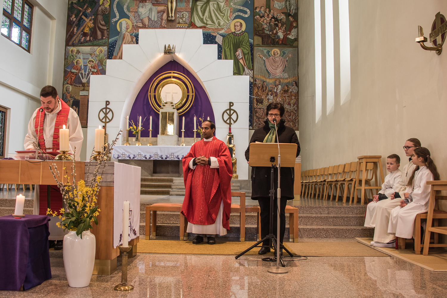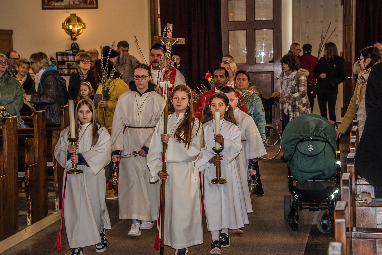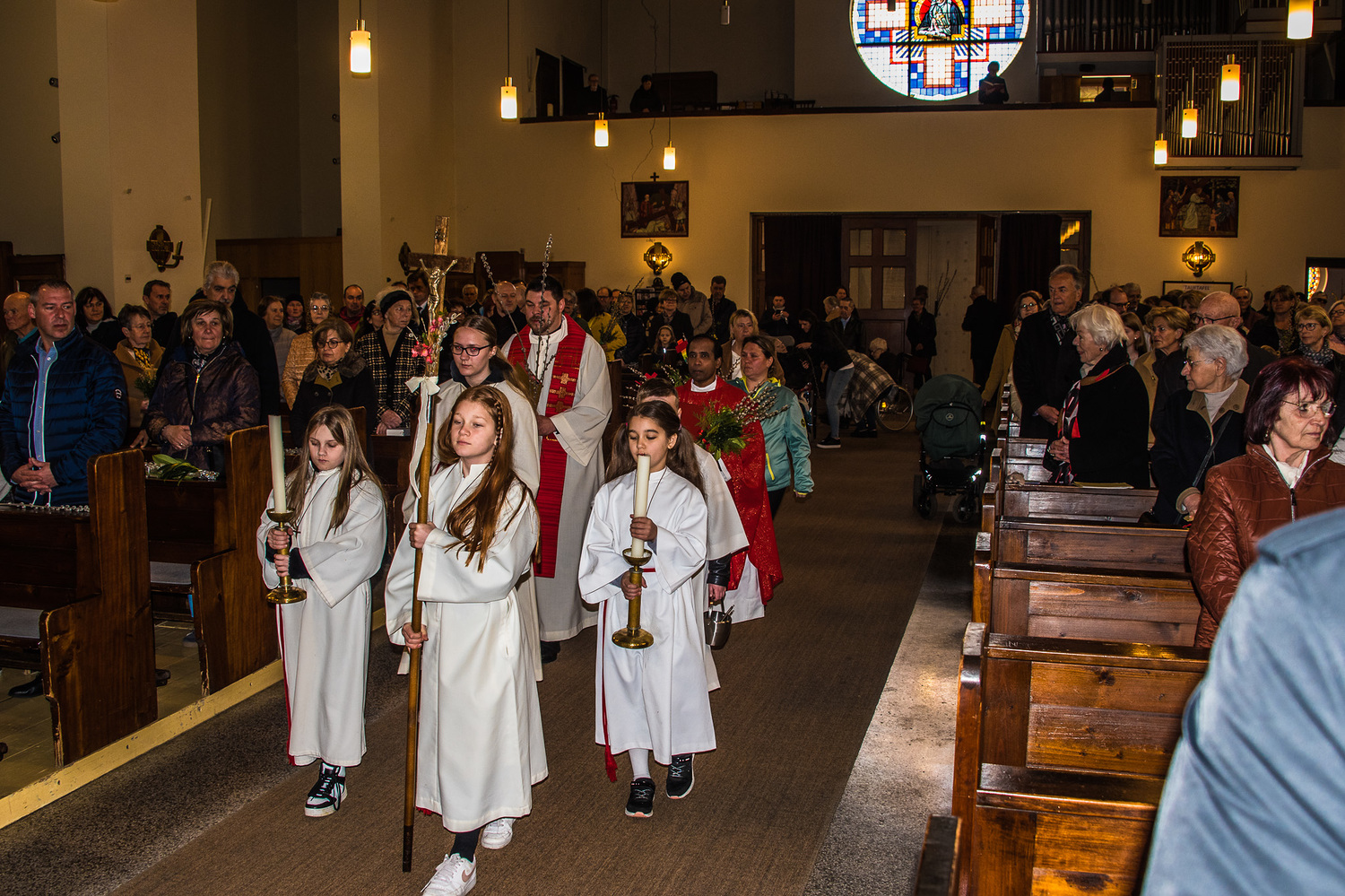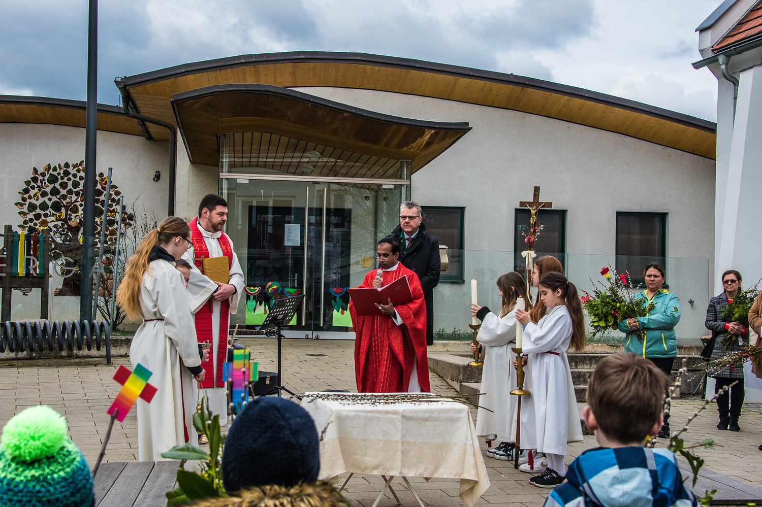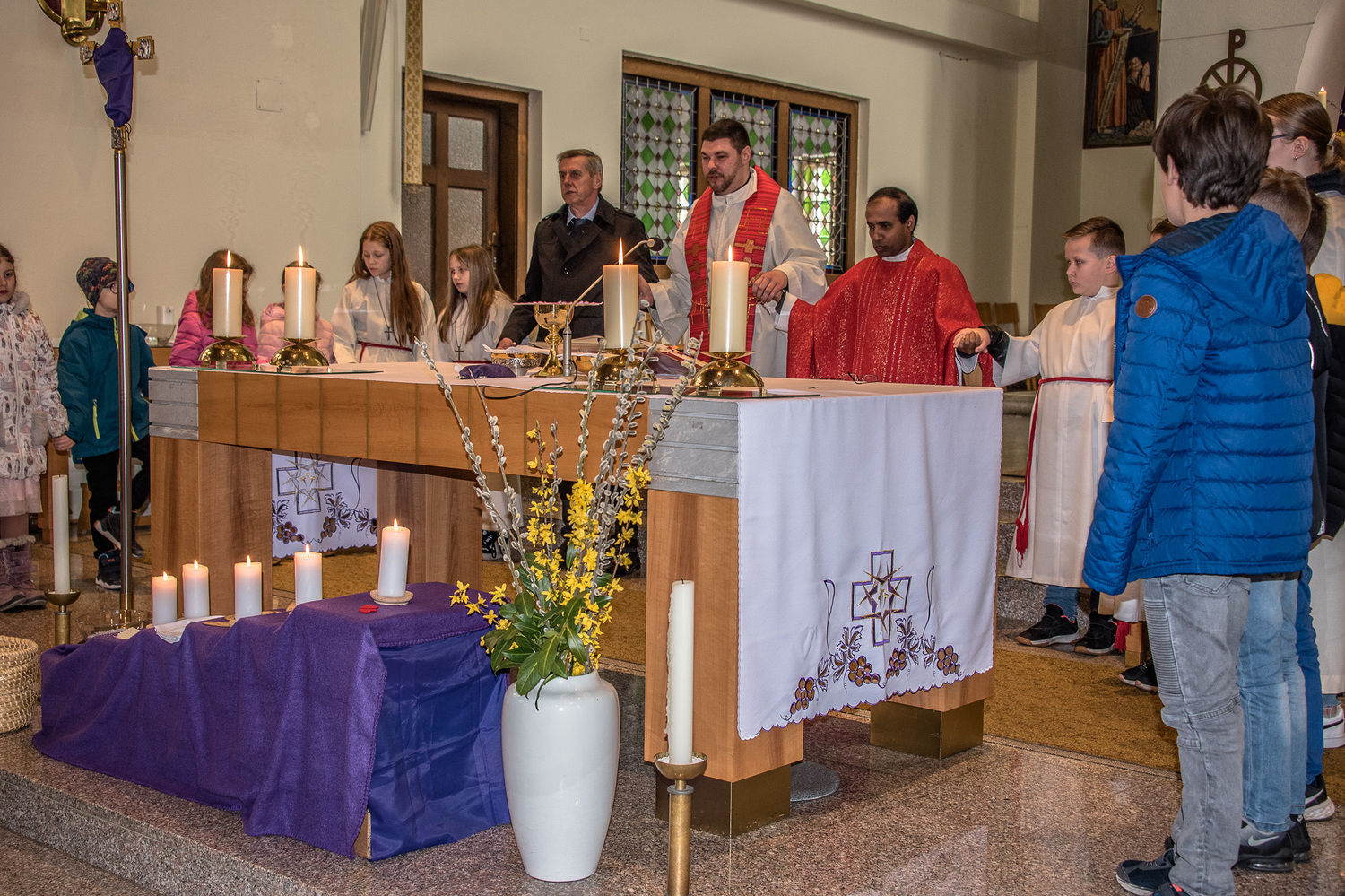 Einen sehr feierlichen Palmsonntag erlebten viele Gläubige im Gedenken an den Einzug Jesu in Jerusalem. Vor der Franziskuskirche segnete Pater Deiva die Palmzweige und lud anschließend zur Prozession zur Pfarrkirche ein. Die Lesungen und Passion erinnerten an das Leiden Christi. Im Schlusslied, das die Erstkommunionkinder mit Gesten gestalteten, erklang der Wunsch aller: „Shalom – der Friede des Herrn sei mit dir!“