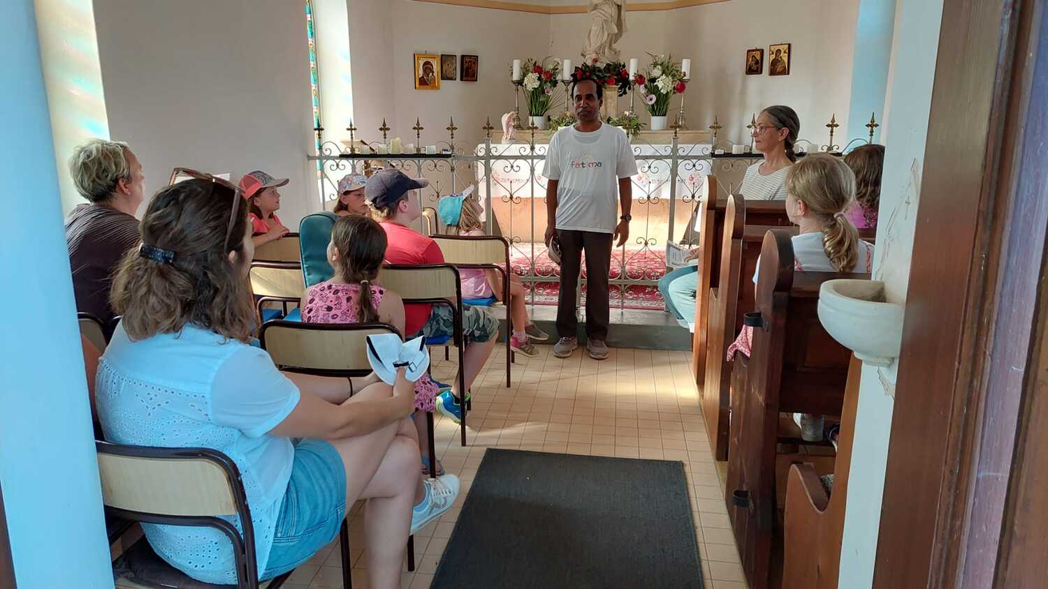 Ein gemeinsamer Abschluss einer erfüllten Zeit tut gut. So trafen sich Erstkommunionkinder, Eltern, Pater Deiva, Nicole und Renate zu einer Wanderung zur Weinbergkapelle und Gebet zur Mutter Gottes um Frieden und Fürsprache.