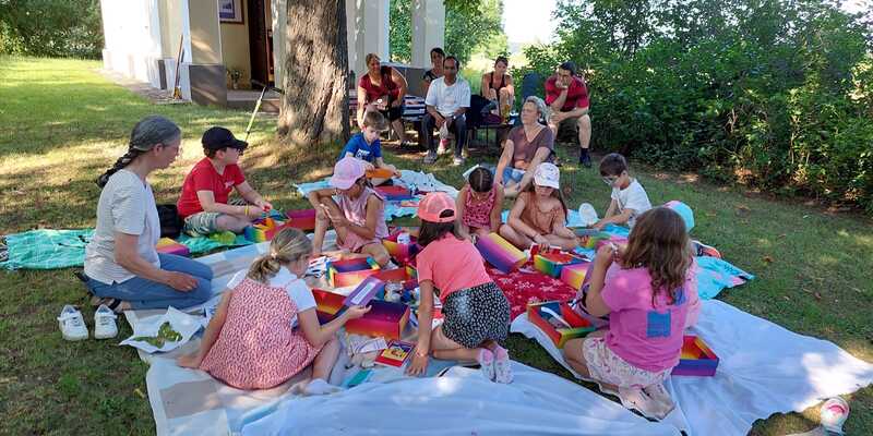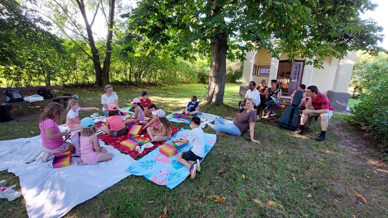 Vor der Kapelle wurden die Decken aufgebreitet und mit den gesammelten Schätzen aus der Schatzkiste Rückschau gehalten.