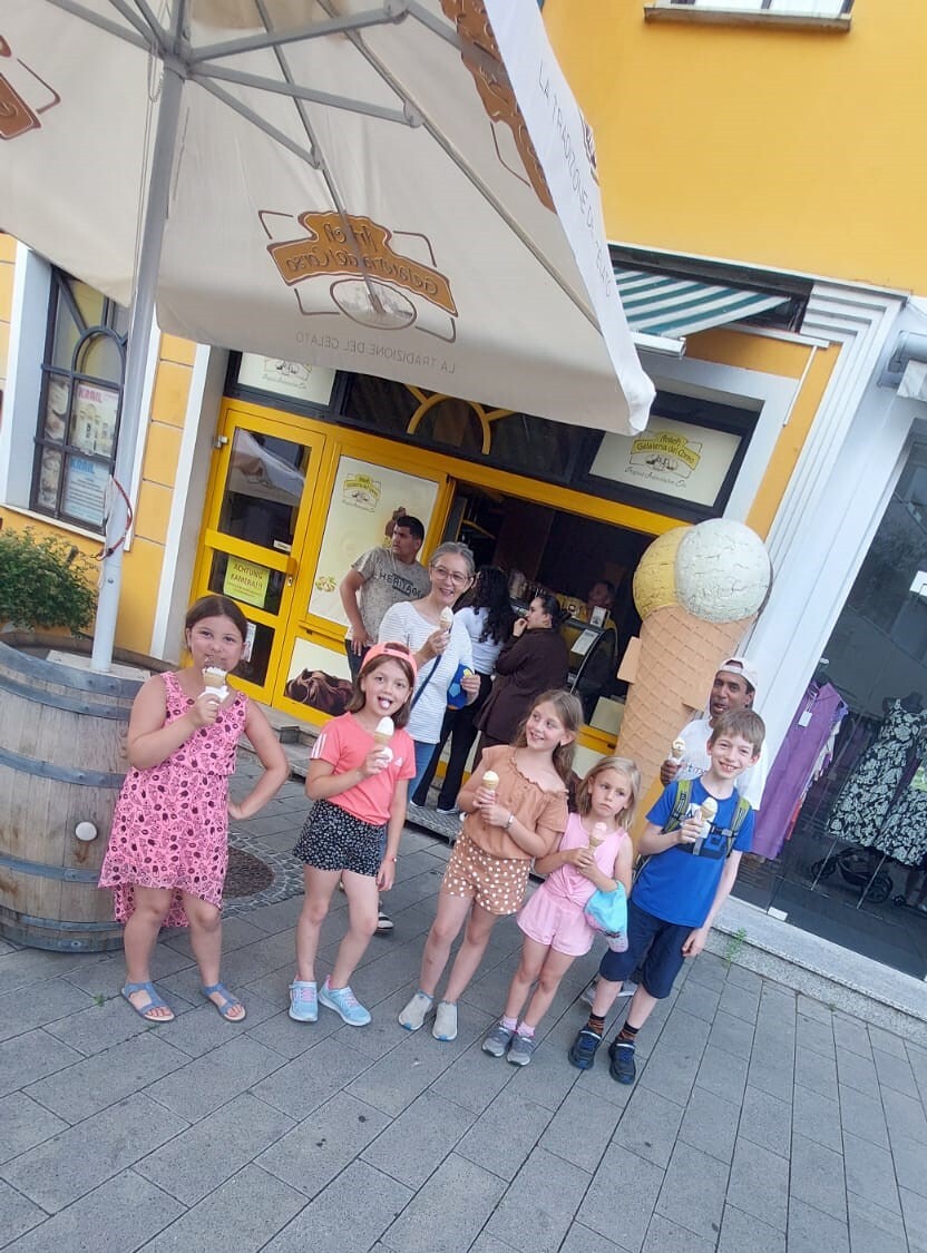 Danach packten die Kinder ihre Jause aus und ganz selbstverständlich wurde beim Picknick geteilt - wie es Jesus vorgemacht hatte. Mit einem Ballspiel und Tanz, bei dem die Kinder auch ihre Eltern motivierten, klang der gelungene Nachmittag aus. Auf dem Heimweg schlug Pater Deiva vor noch ein Eis zu schlecken - das ließen sich die Kinder nicht zweimal sagen. Herzlichen Dank für alle schönen Treffen. Im Herbst wollen wir bei anderen Gelegenheiten zusammenkommen!