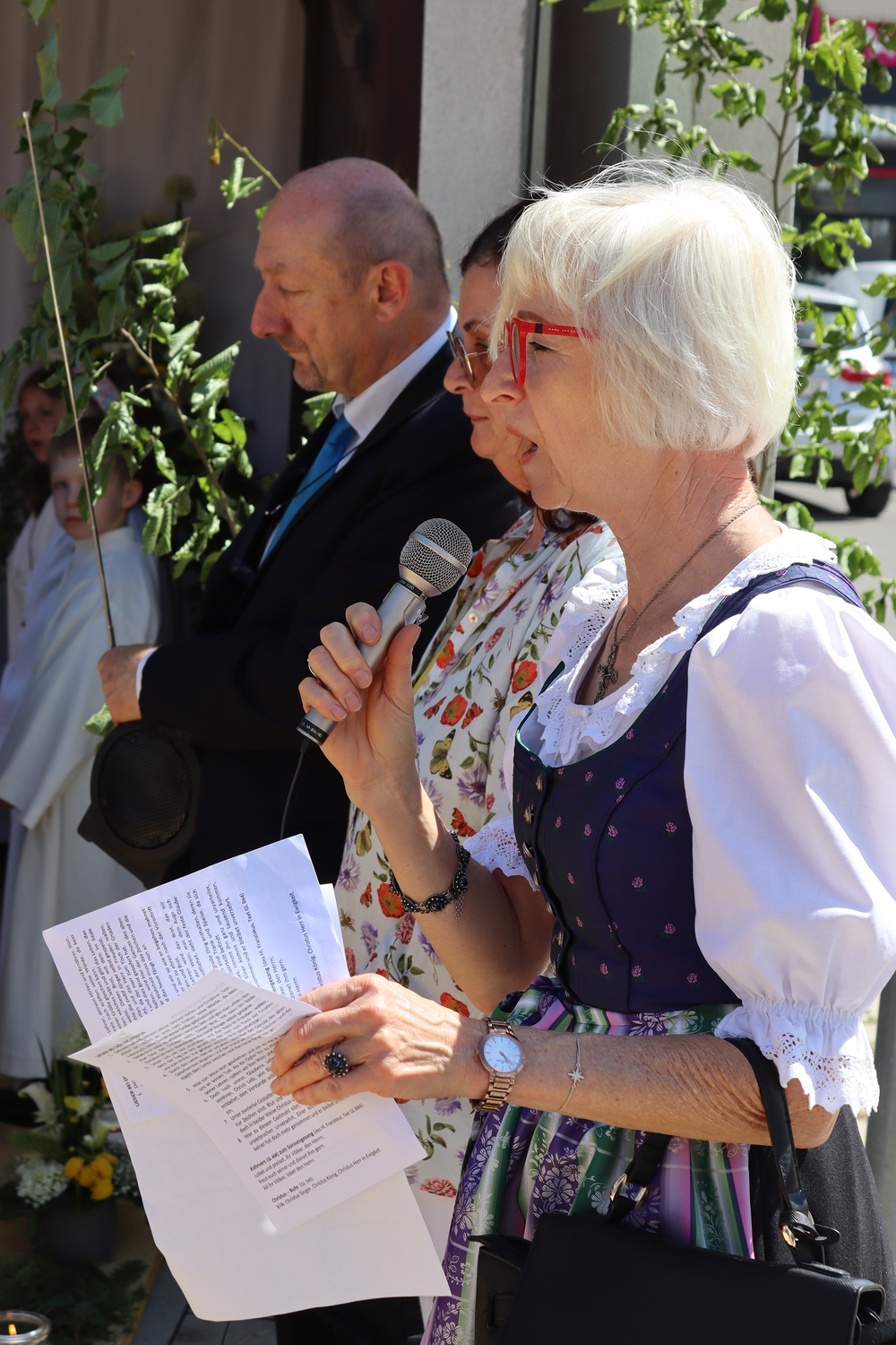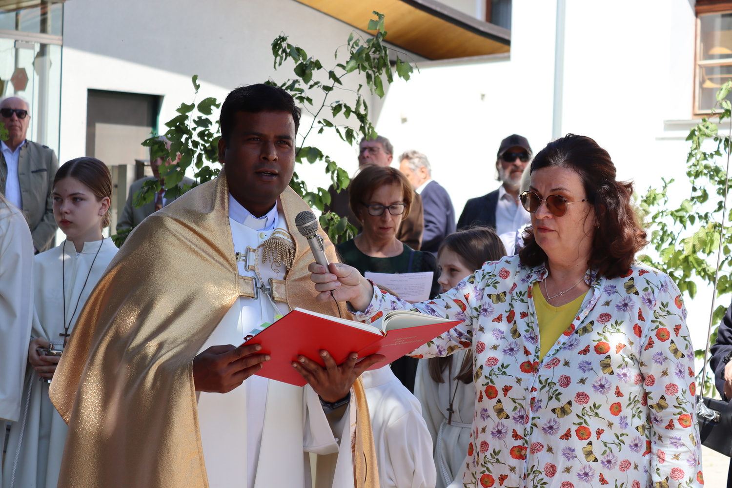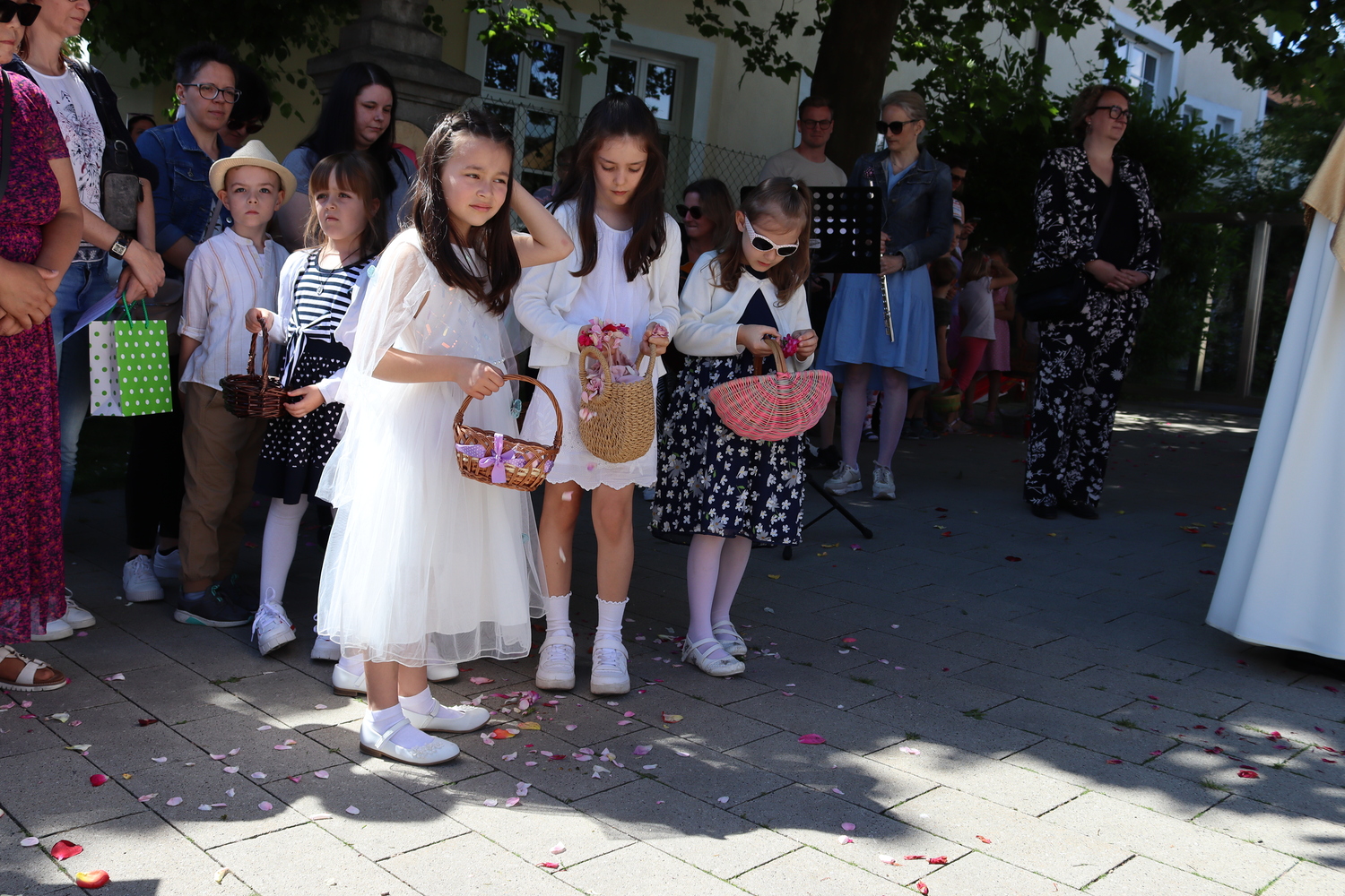 Die Heilige Messe am Fronleichnamstag 2024 wurde als Familienmesse gestaltet. Erstkommunionkinder, Ministrant:innen und alle weiteren kleinen und großen Besucher:innen konnten sich mit Liedern, Tänzen und Gebeten am Gottesdienst aktiv beteiligen.