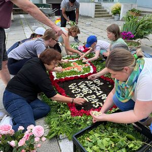 Ein herzliches Dankeschön an alle, die zu diesem Fest beigetragen haben - besonders an alle kreativen Gestalter:innen der Blumenteppiche vor der Franziskuskirche und vor der Pfarrkirche.