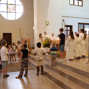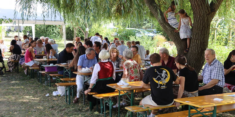 Am letzten heißen und sonnigen Sommersonntag feierte die Pfarrfamilie ihr Pfarrfest mit allem was dazu gehört: Begonnen wurde mit einer stimmigen Familienmesse mit schwungvoller Musik und vielen Kindern, die mitgestaltet haben, zu Mittag gab es reichlich Essen für die unterschiedlichen Geschmäcker und am Nachmittag Süßes beim Mehlspeisstandl oder kühles Spritziges beim Weinstand.