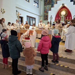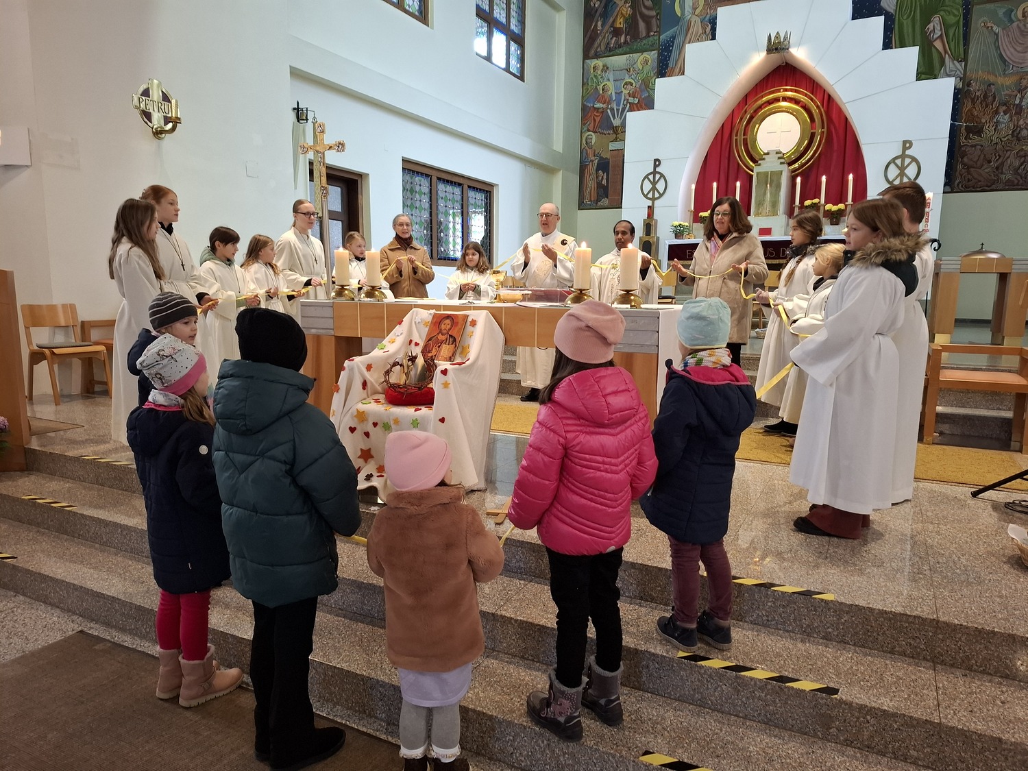 Beim gemeinsamen Vaterunser um den Altar gebetet haben alle Kinder eine gemeinsame Krone gebildet. Diese zeigte, dass alle seit der Taufe Königskinder, ja Könige und Königinnen sind.