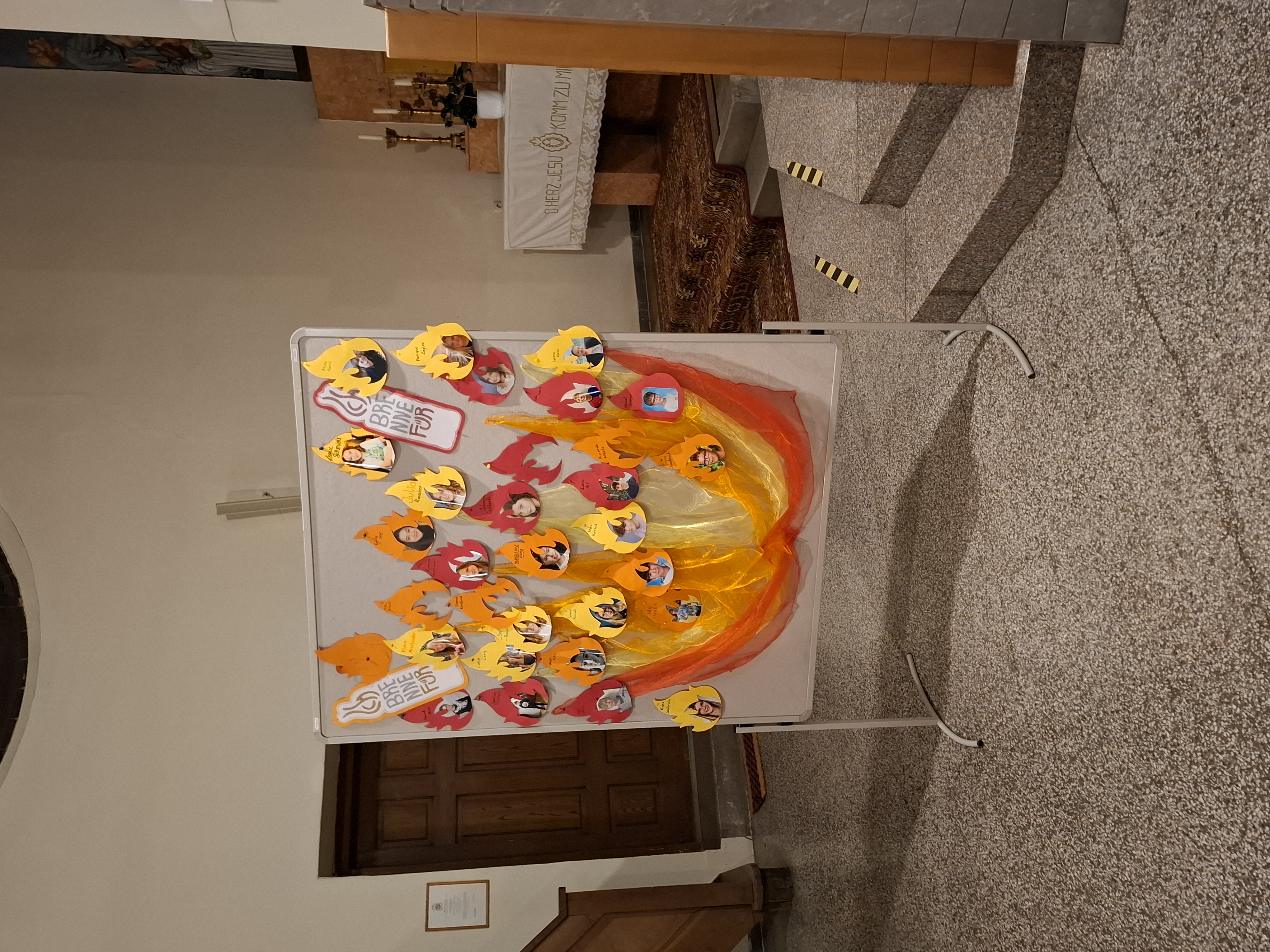 Am Samstag Nachmittag trafen sich die Firmlinge mit ihren Firmbegleiterinnen Marion und Christina im Pfarrzentrum. Auf dem Programm standen Kennenlernspiele, das Gestalten des Vorstellungsplakates und der Firmkerzen und eine Einführung ins Thema: "Be on fire!".