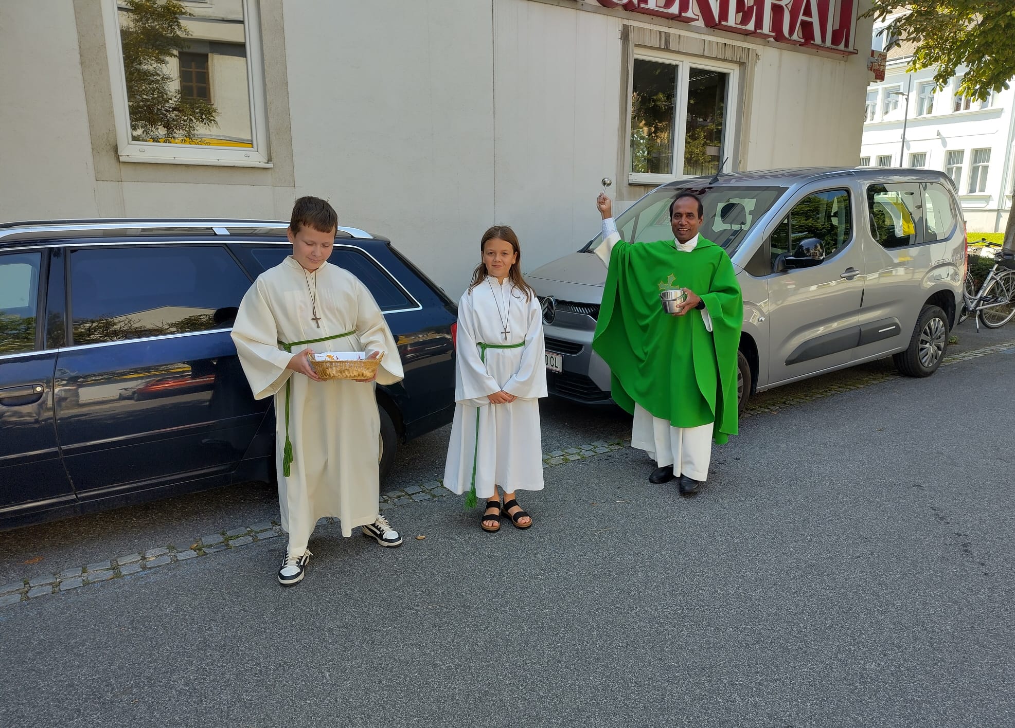 Beim Sonntagsgottesdienst am 20. Juli gratulierte Pater Deiva unserem Hr. Bürgermeister zum 60. Geburtstag und dankte für das gute Zusammenwirken von Gemeinde und Pfarre. Nach dem Gottesdienst segnete P. Deiva anlässlich des Christophorus-Sonntags die Fahrzeuge. Bei einer Agape auf dem Kirchenplatz klang der Sonntagvormittag aus.