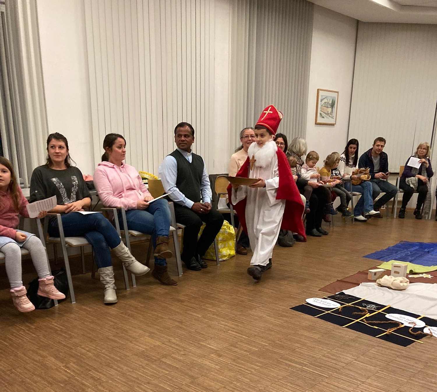 Am Nikolausabend trafen sich Kinder und Erwachsene im Pfarrsaal um an den heiligen Nikolaus, Freund aller Kinder, zu erinnern. Gemeinsam wurden Lieder gesungen und die Geschichte von der "Rettung aus dem Gefängnis" erzählt. Dabei durften die Kinder die Stadt Myra und den Heiligen als Helfer in der Not anschaulich darstellen. Der "Nikolaus", der eigentlich Simon heißt, teilte auch Süßigkeiten an alle aus. Anschließend ging´s zum Hauptplatz, wo jedes Kind ein Nikolaus-Sackerl erhielt.