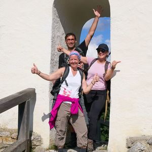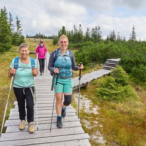 Treffpunkt bei der Pfarrkirche Oberpullendorf, Transfer nach Redlschlag, über den Hutwisch, den Zentralalpenweg 02 nach Mönichkirchen auf die StoaAlm bei der Bergstation Mariensee