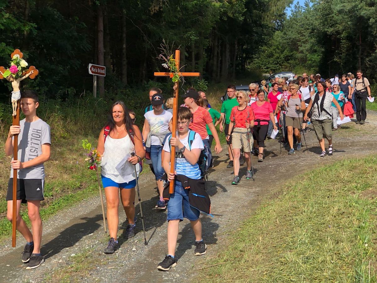 Gläubige aus allen Ortsteilen des Pfarrverbandes Draßmarkt – Kaisersdorf/Weingraben – Oberrabnitz/Karl machten sich am Hochfest Mariä Aufnahme in den Himmel jeweils von ihren Pfarrkirchen aus auf den Weg in Richtung Dörfl zur Bründlkapelle. Auf halbem Weg trafen sich die einzelnen Gruppen im Wald zur Andacht. Schließlich zogen 66 Pilger gemeinsam in die Kapelle Maria Bründl ein und feierten mit zahlreichen weiteren Wallfahrern den Festgottesdienst.