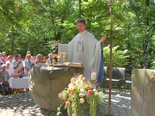 Die in Steinberg-Dörfl wirkende Hinterglasmalerin Edda Schaller (Bild links) erklärte sich bereit, die 14 Stationsbilder zu malen.