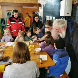 Am Sonntag, 20. Dezember fand der Weihnachtsmarkt in Grafenschachen beim Platz vor dem Verschönerungshaus statt. Speziell die Kinder freuten sich über die Bastelstation. Pfarrer Norbert Filipitsch hat dafür ein Bratapfelbrot gebacken.