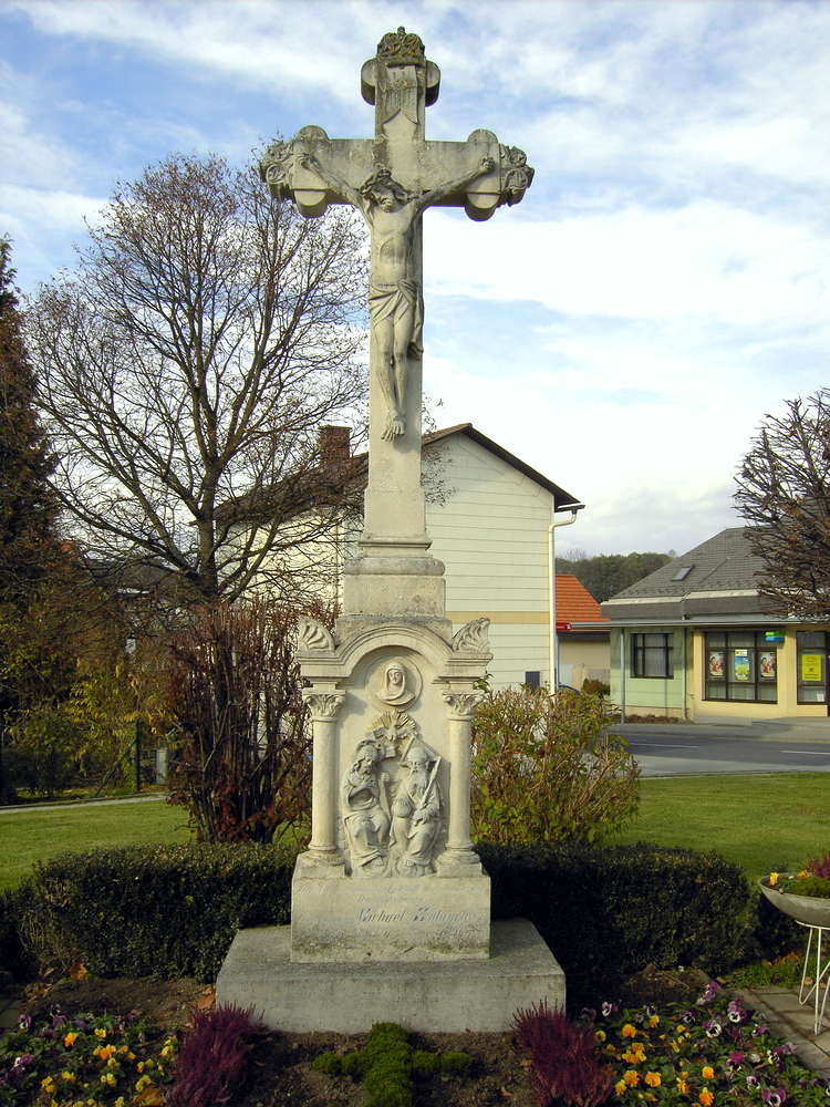 Die Dreifaltigkeitssäule erinnert an die Stelle, an der früher die Kirche stand. Die Inschrift lautet: „Gewidmet von Michael Halwachs in Grafenschachen, Haus Nr. 64. Zum Andenken an die bis April 1880 hier gestandene Dreifaltigkeitskirche.“