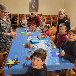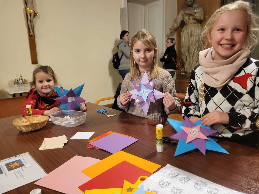 Im Adventgottesdienst am 14. Dezember haben wir von Johannes dem Täufer gehört und auch die schöne Darstellung in der Kirche mit neuen Augen sehen gelernt. Das miteinander Beten und Singen hat uns alle gestärkt und Freude bereitet. Auch das gemeinsame Basteln im Anschluss war ein schönes Gemeinschaftserlebnis. In drei Bastelstationen entstanden unsere Kunstwerke: Eine Krippe, ein Engerl und ein Stern. Danke für diesen schönen Nachmittag!